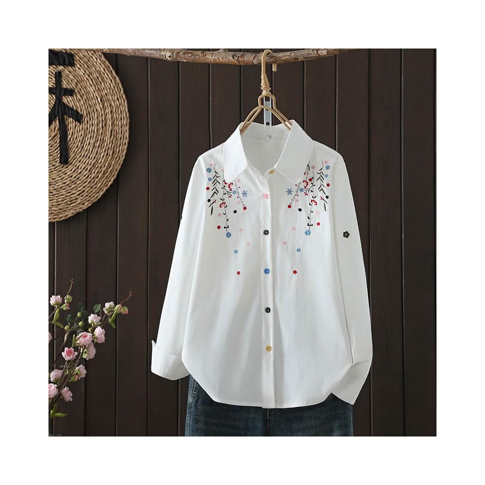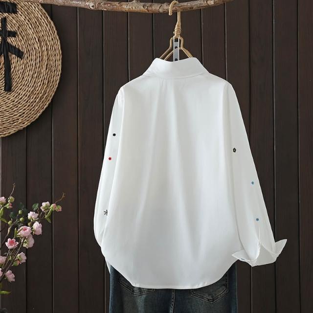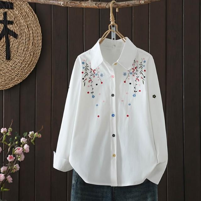 免運 老錢風重工刺繡襯衫女2026春季新款彩虹扣氣質休閒簡約通勤襯衣潮
