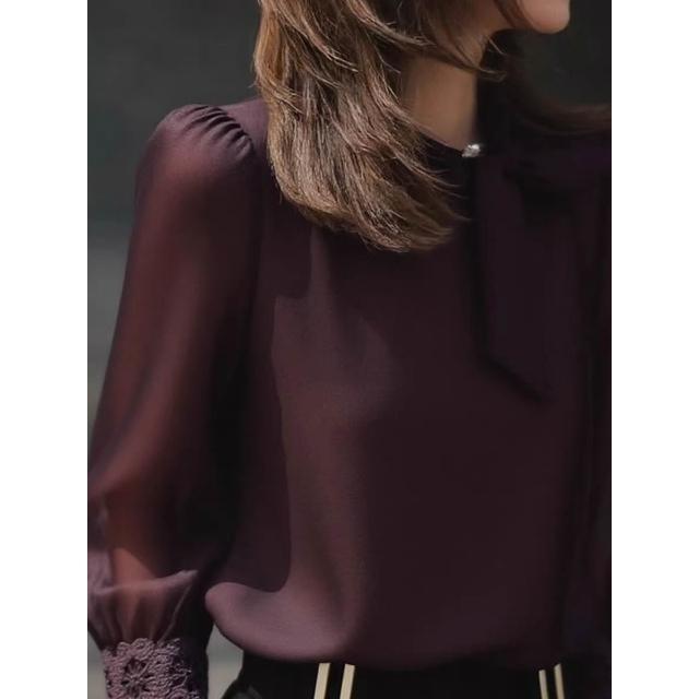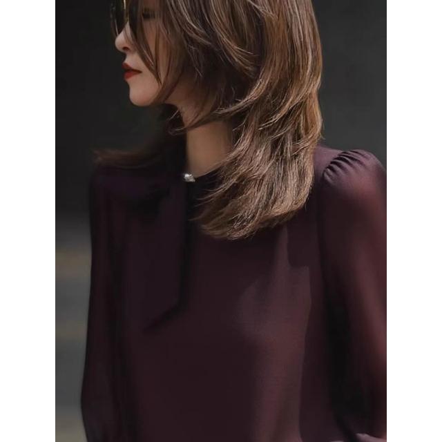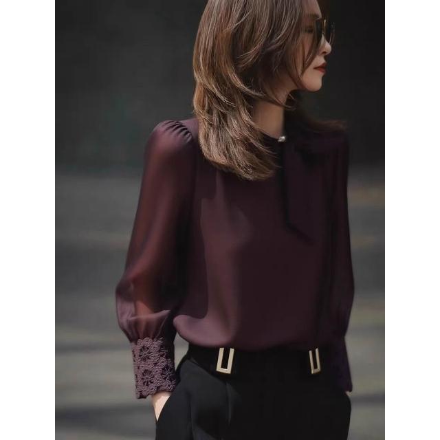 免運 深紫色長袖襯衫上衣女2026秋新款高級感輕奢減齡洋氣重要場合小衫