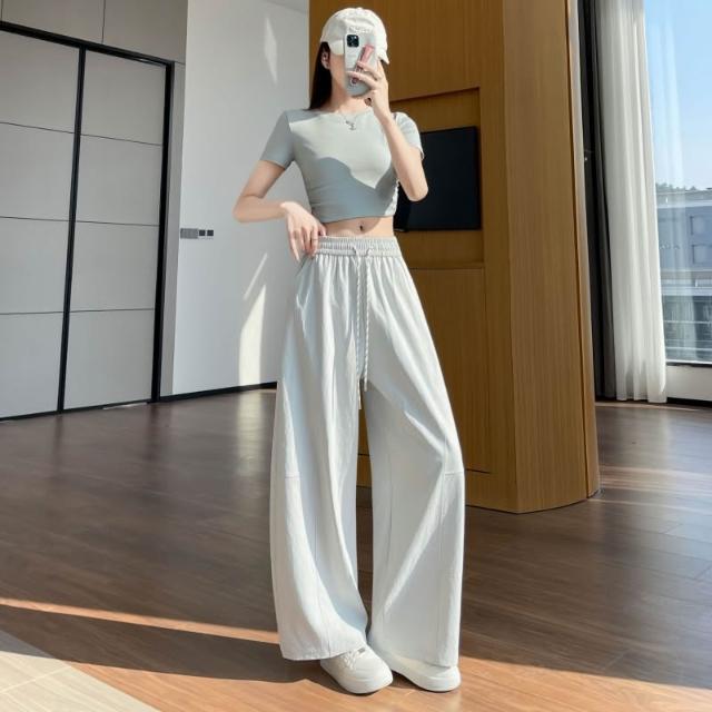 免運 實拍彎刀褲女春季2026新款小個子垂感寬鬆休閒運動闊腿香蕉褲