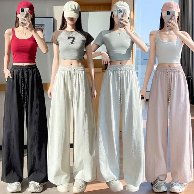 免運 實拍彎刀褲女春季2026新款小個子垂感寬鬆休閒運動闊腿香蕉褲