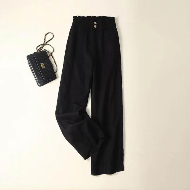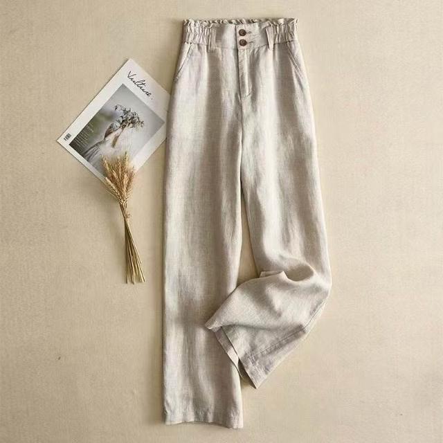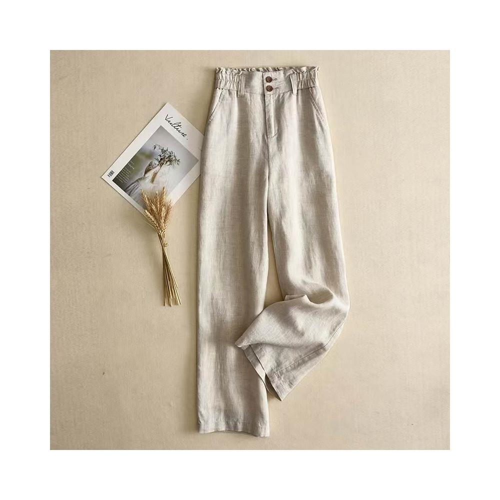 免運 亞麻闊腿褲女高腰垂感春夏薄款休閒棉麻褲子花苞腰亞麻拖地褲