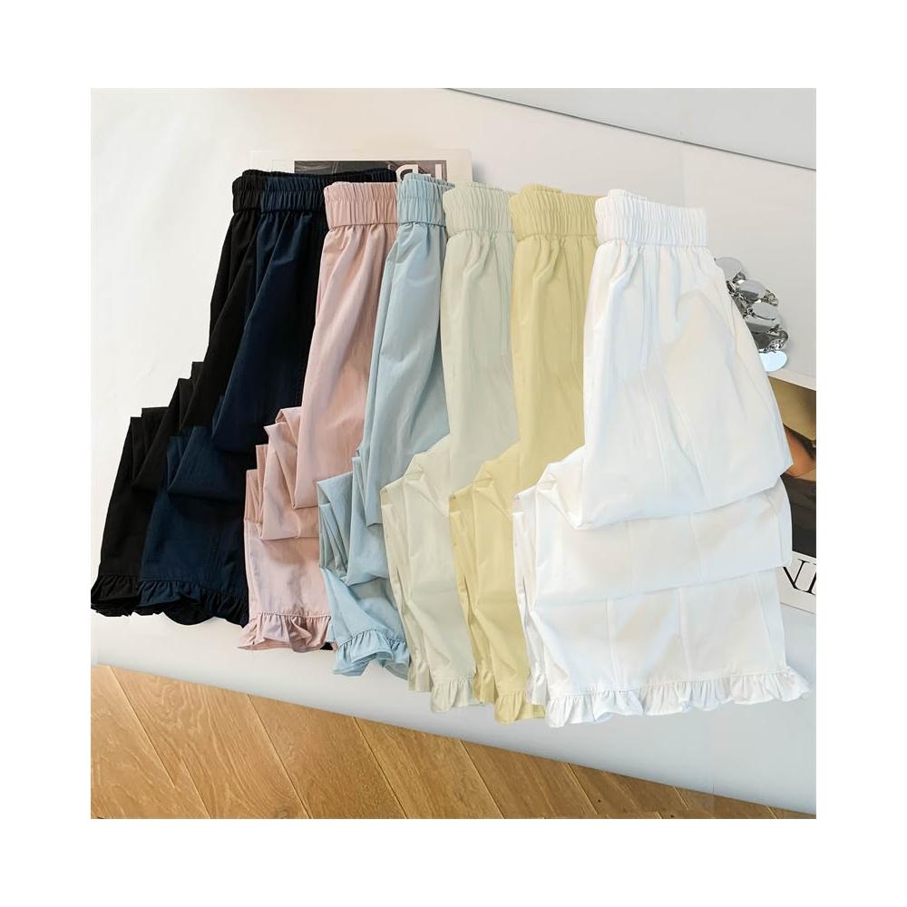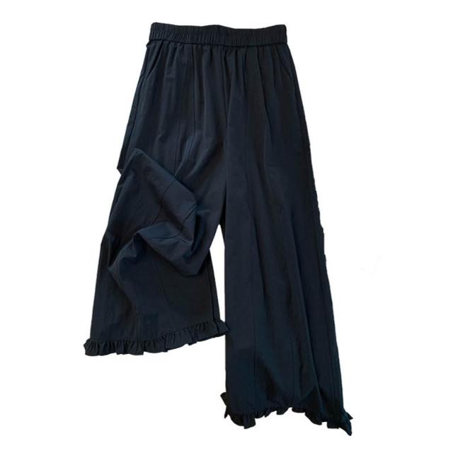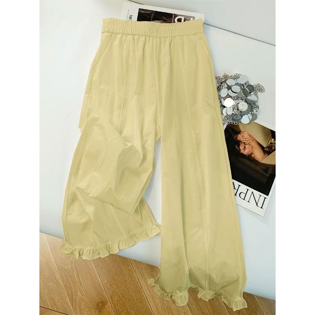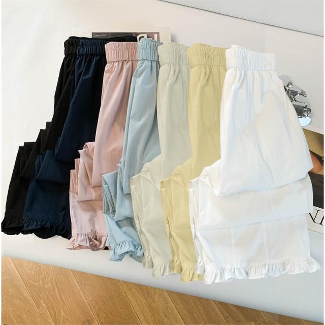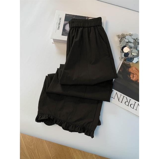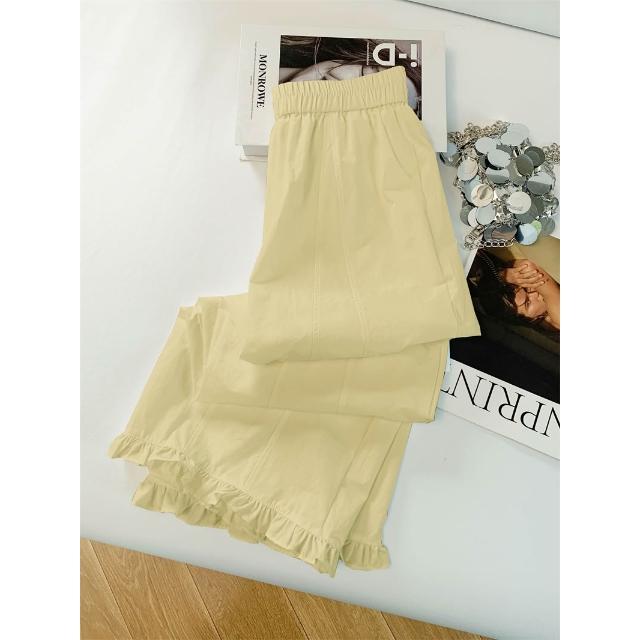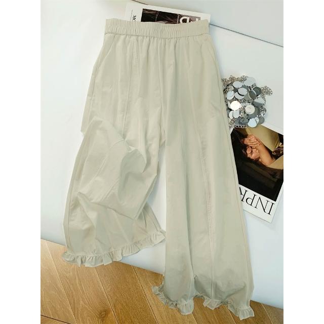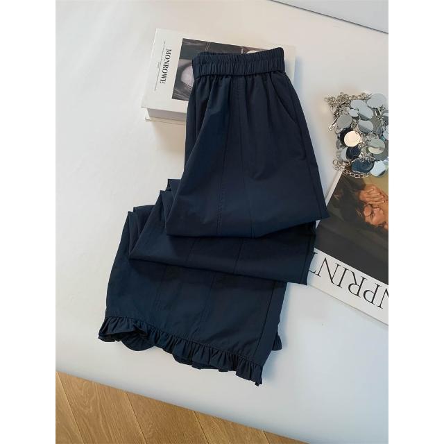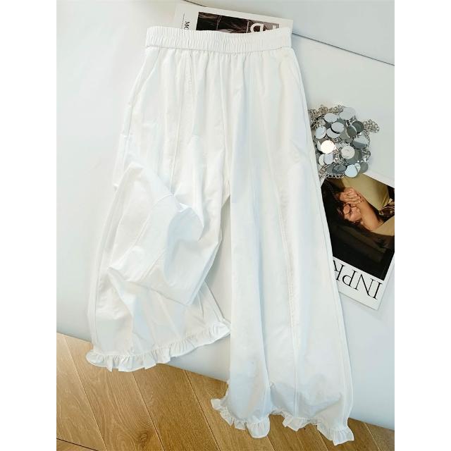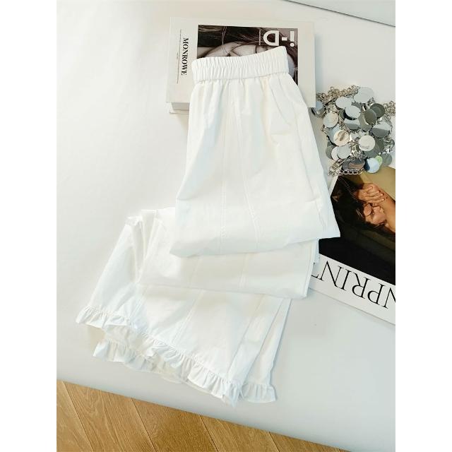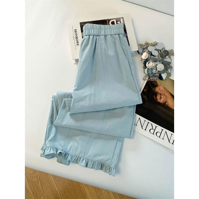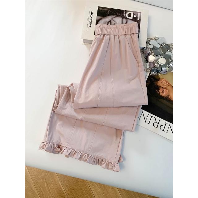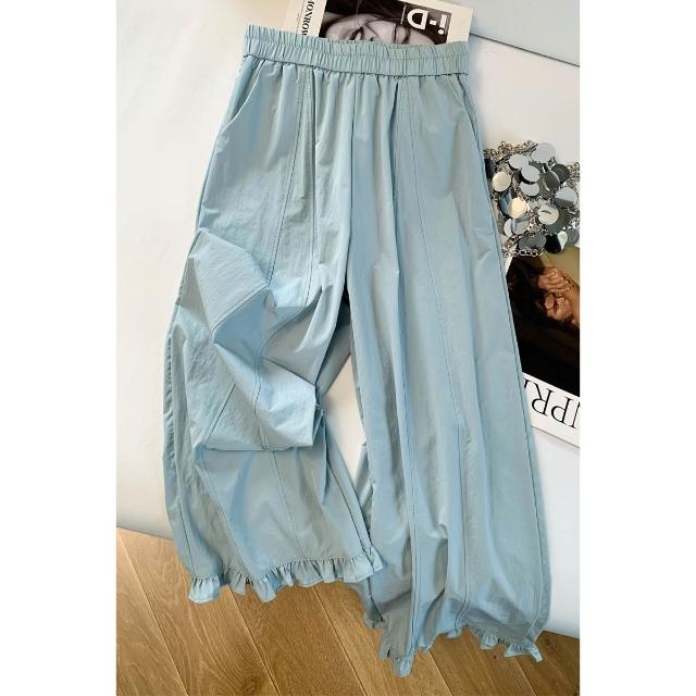 免運 木耳邊闊腿褲女2026夏季薄款冰絲速幹高腰顯瘦九分直筒花苞休閒褲