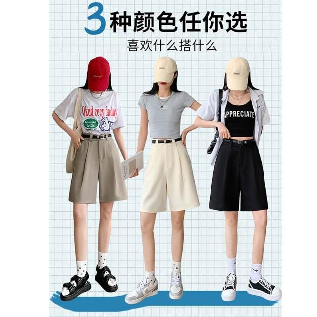 免運 實拍冰絲西裝短褲女夏季薄款高腰a字遮肉顯瘦寬鬆休閒闊腿五分褲