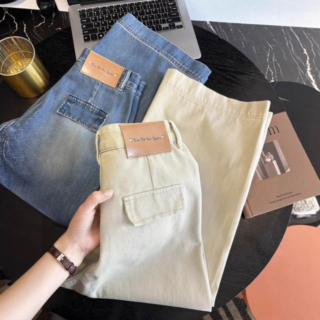 免運 韓系溫柔風!~寬邊九分闊腿牛仔褲女2026新款春季寬鬆高腰直筒褲