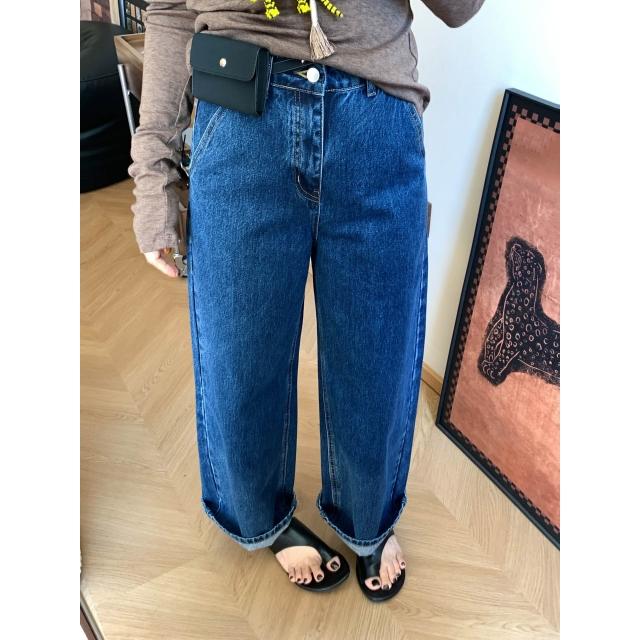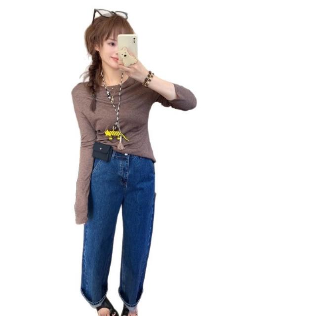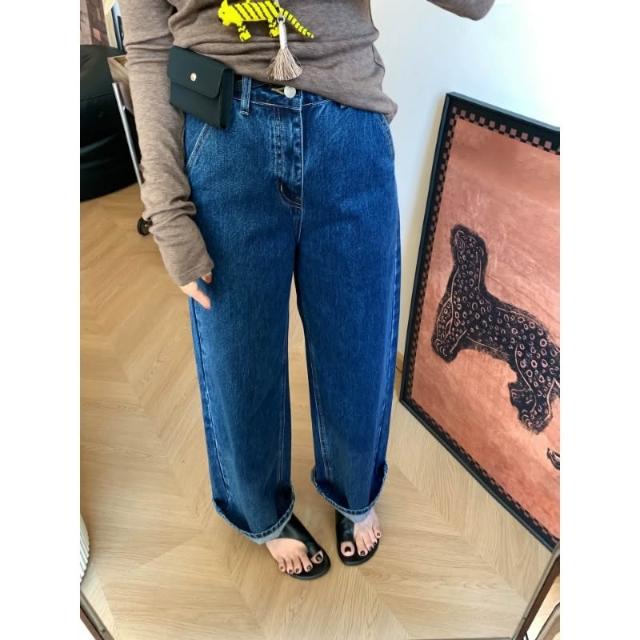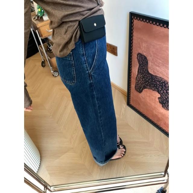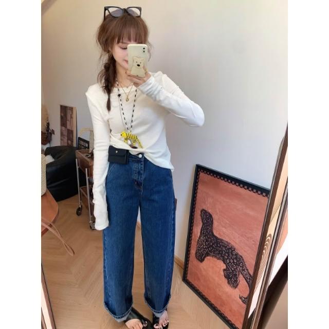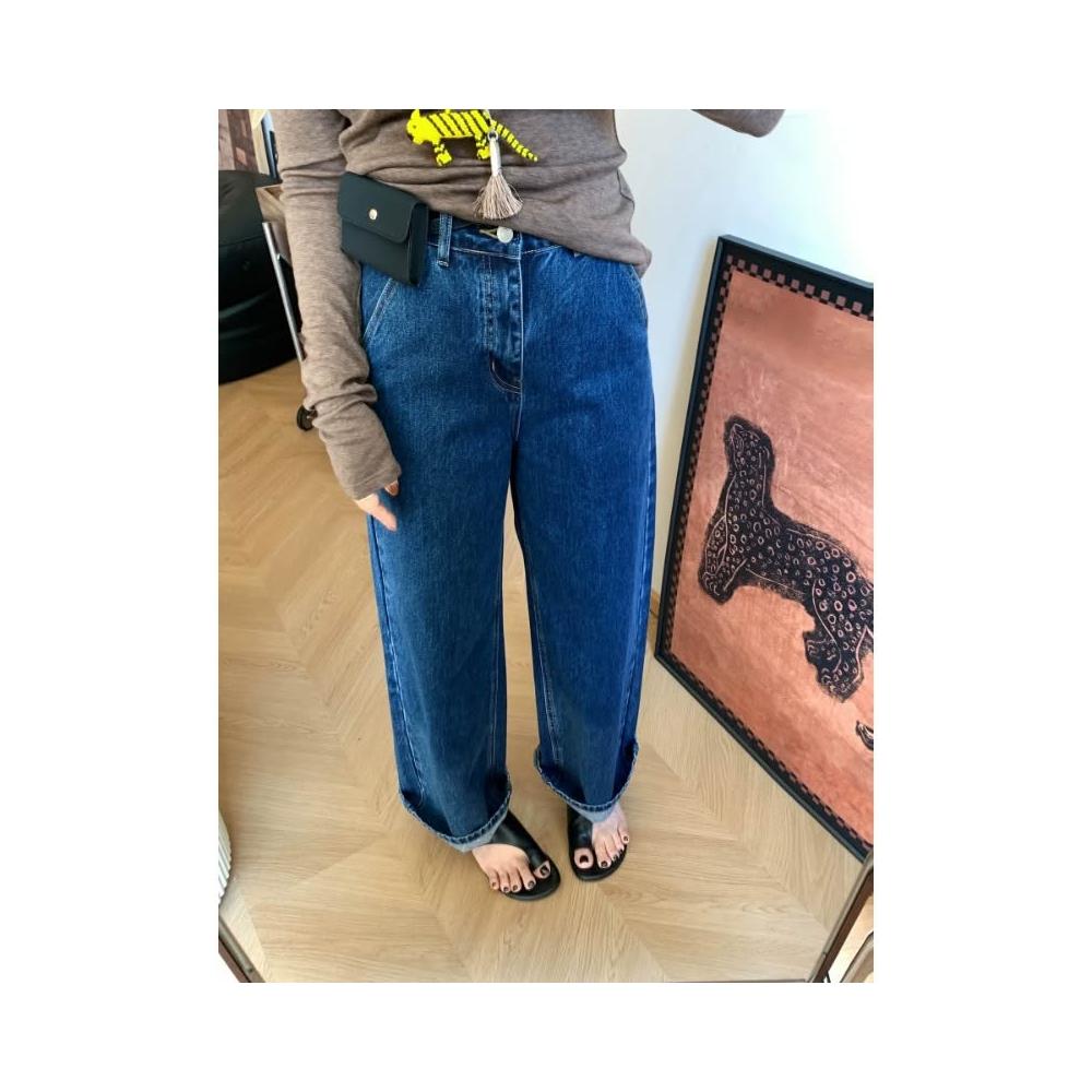 免運 法棍直筒牛仔褲女早春新寬鬆顯瘦復古時尚九分高腰闊腿褲