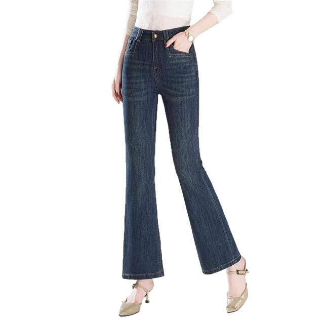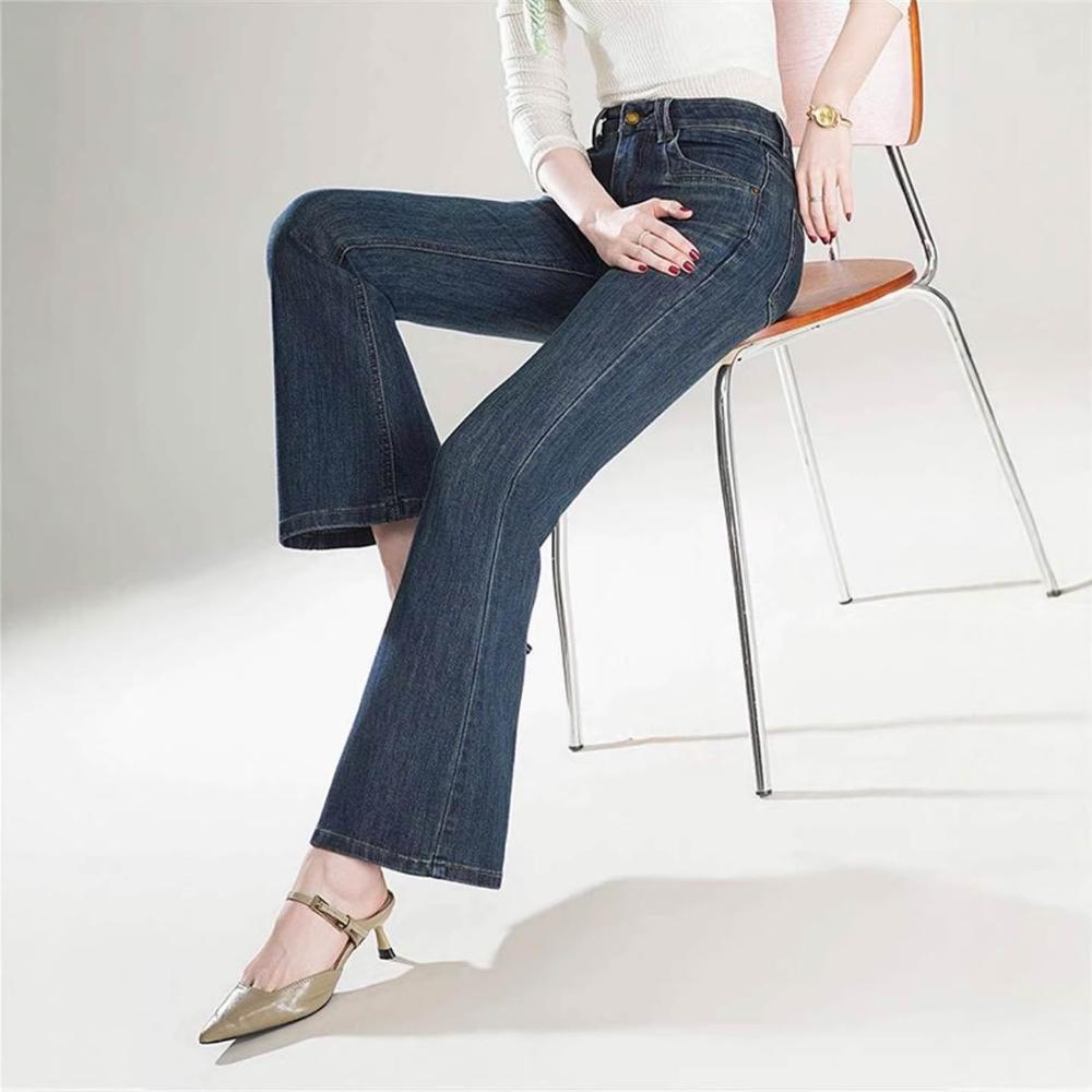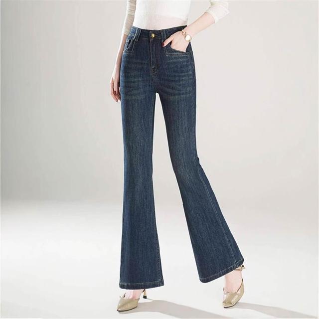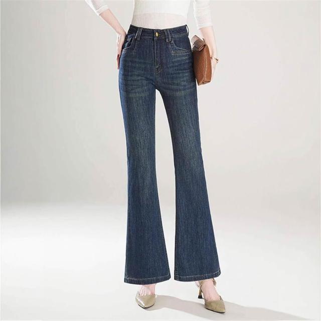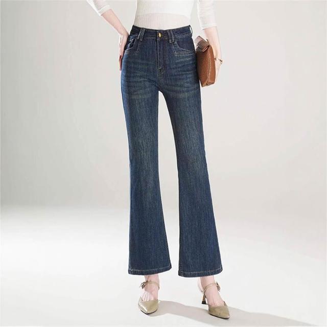 免運 高腰顯瘦窄版直筒闊腿褲丹寧藍微喇牛仔褲女春秋2026新款巨好看