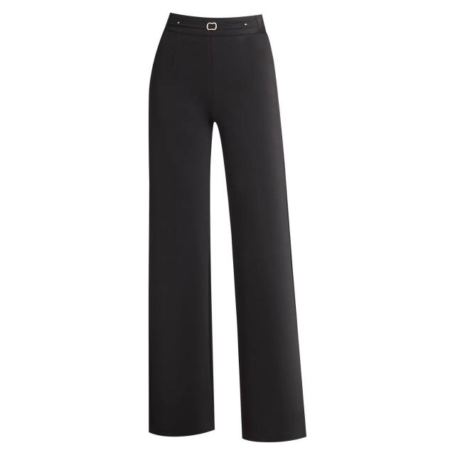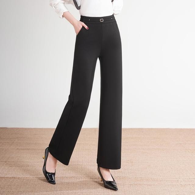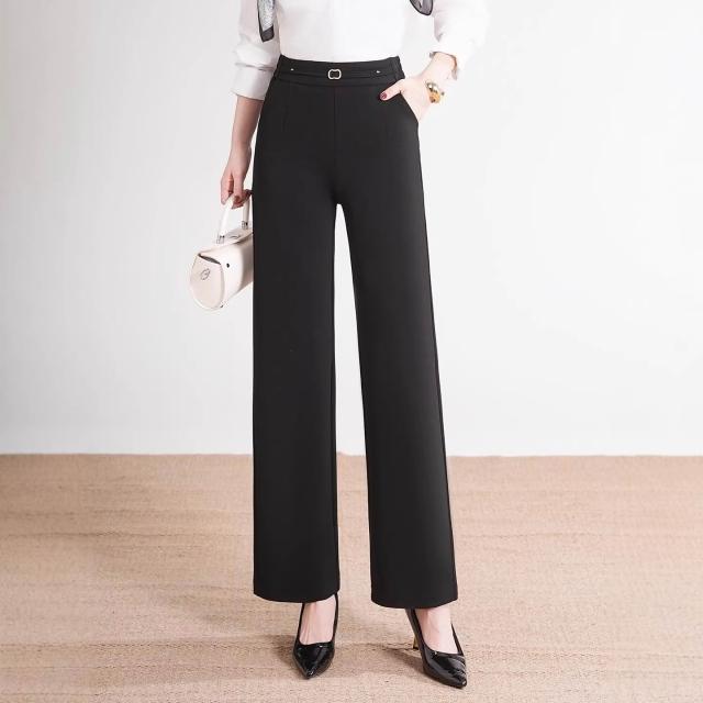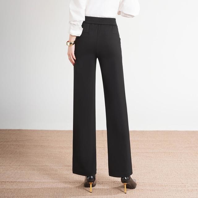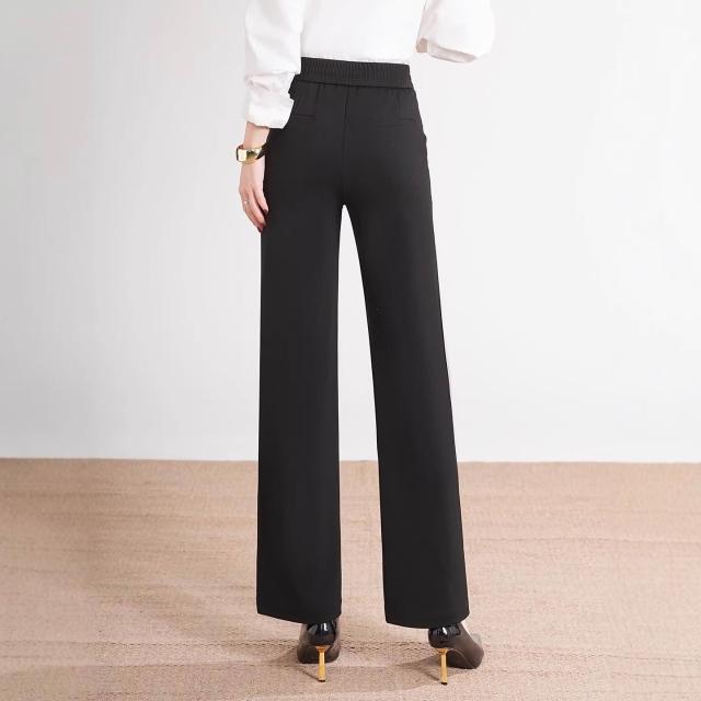 免運 時尚黑色直筒西裝褲女鬆緊腰春秋季新款中年媽媽顯瘦窄版闊腿長褲