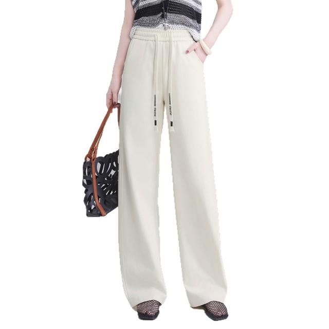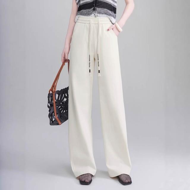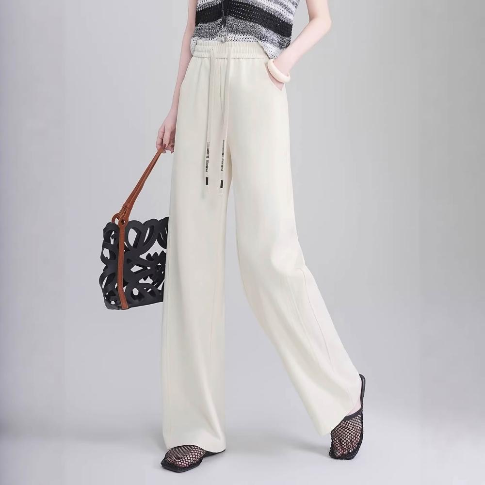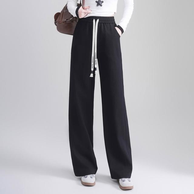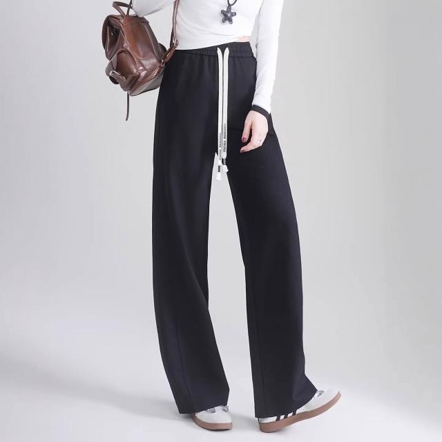 免運 鬆緊腰垂感闊腿褲女窄版直筒寬鬆休閒糯米褲春秋2026新款