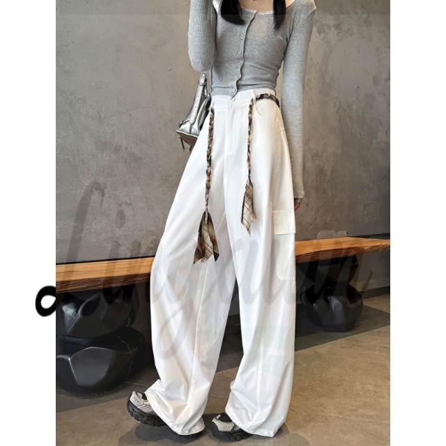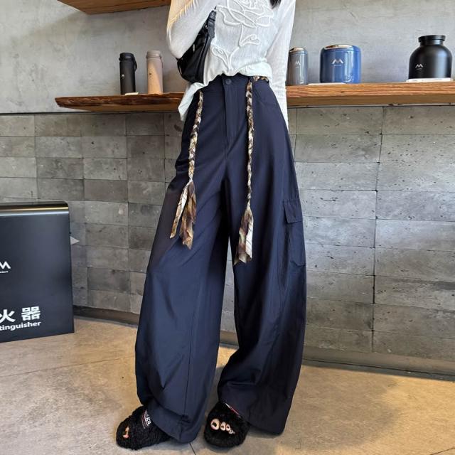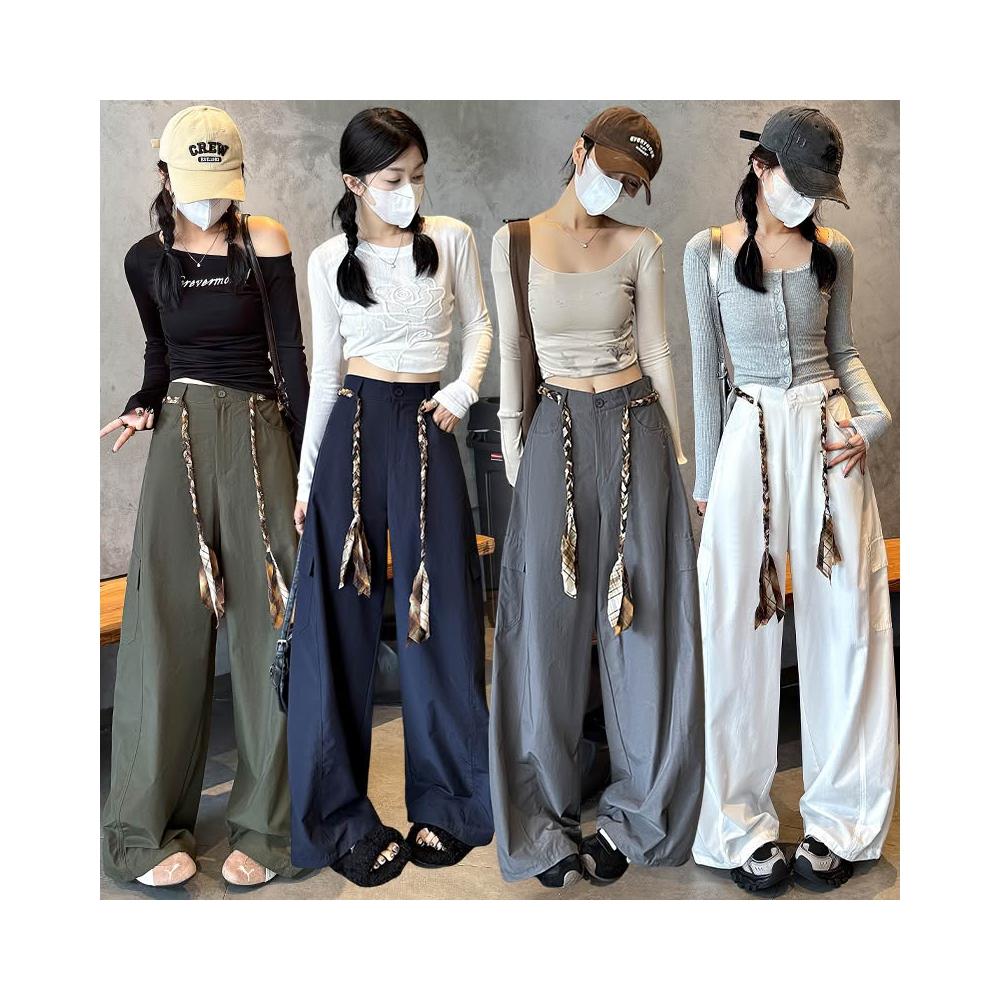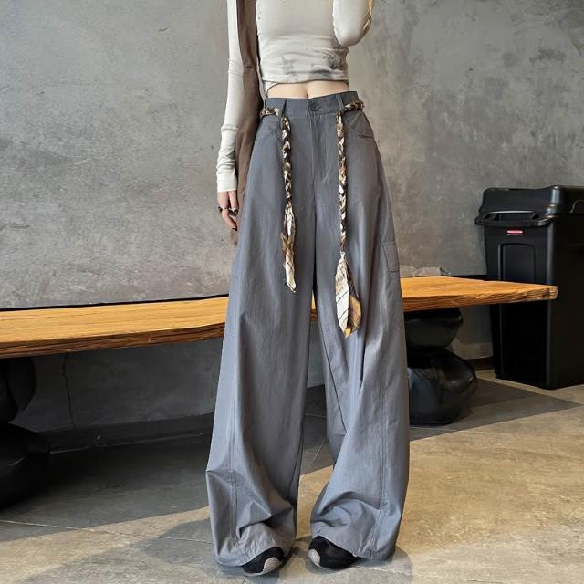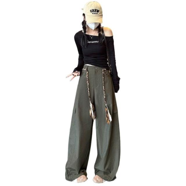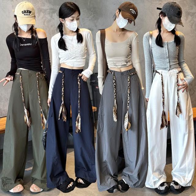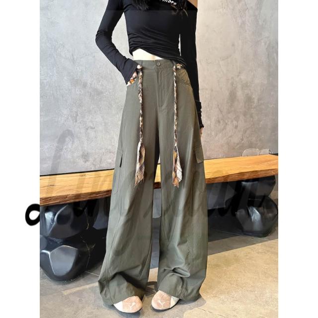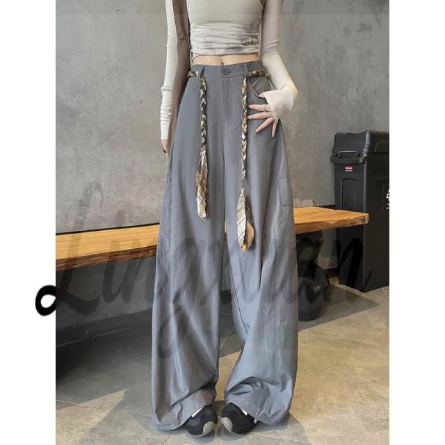 免運 實拍2026秋新款工裝褲女編織腰帶闊腿褲美式鬆弛感辣妹戶外休閒褲