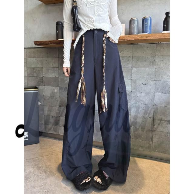 免運 實拍2026秋新款工裝褲女編織腰帶闊腿褲美式鬆弛感辣妹戶外休閒褲