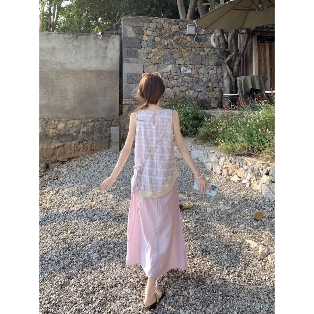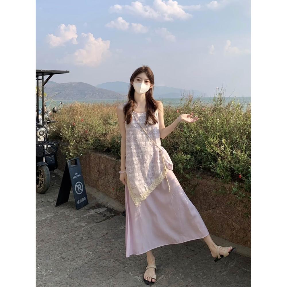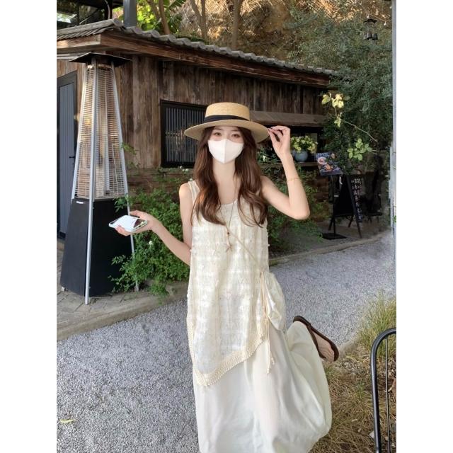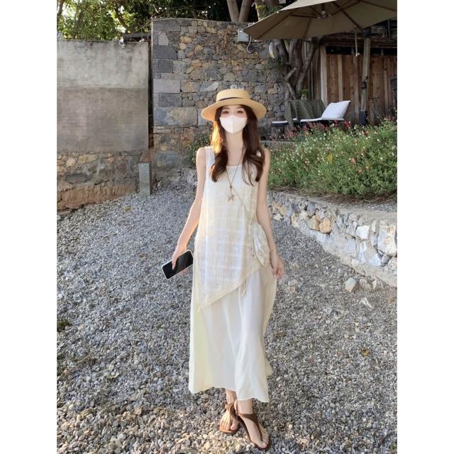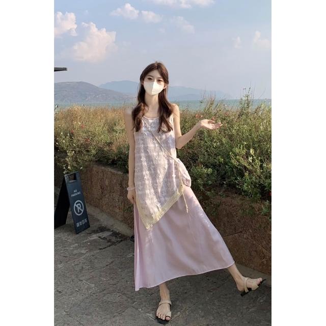 實拍 2026夏季新款小香風不規則假兩件流蘇背心連衣裙度假風裙子