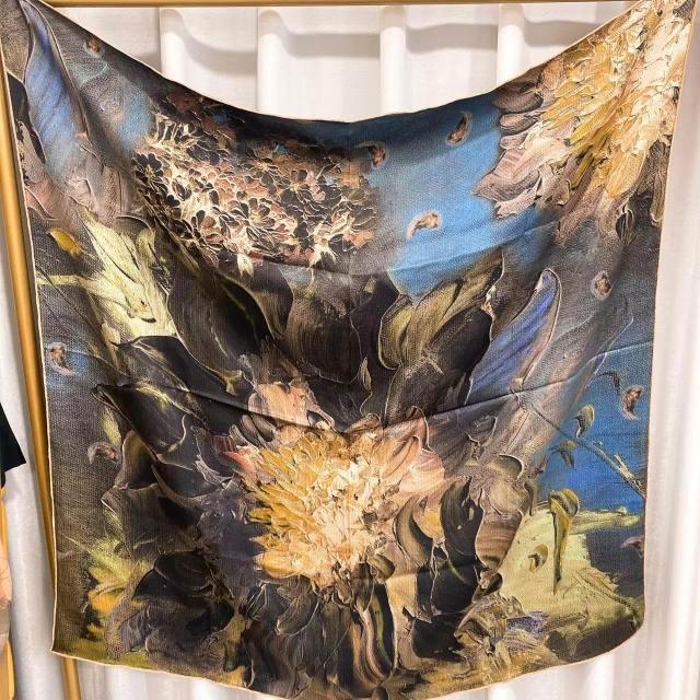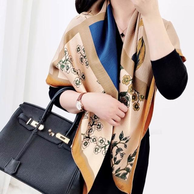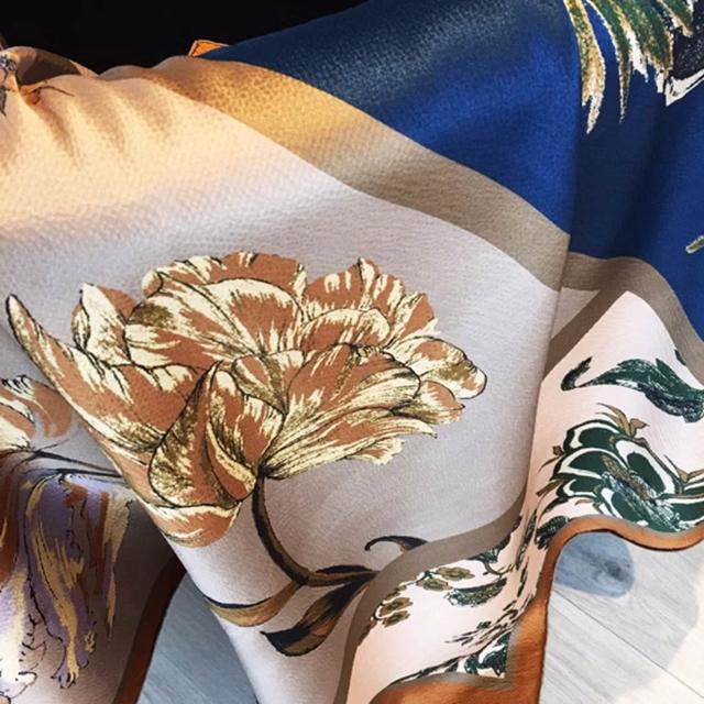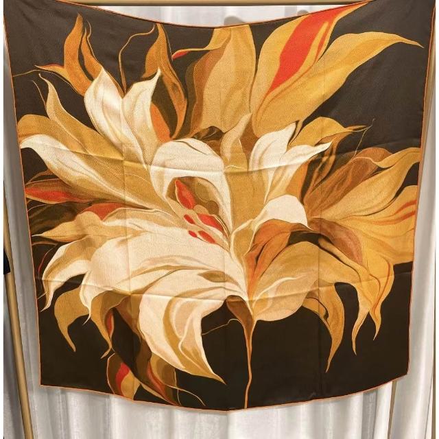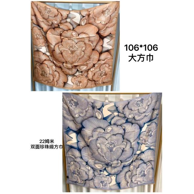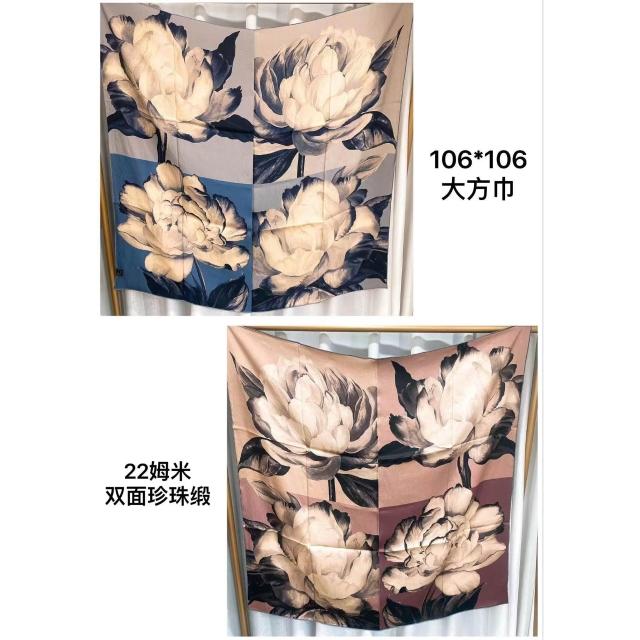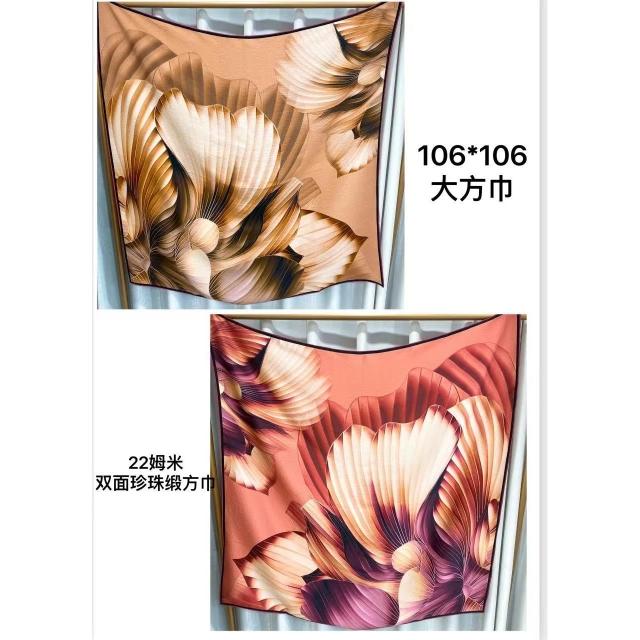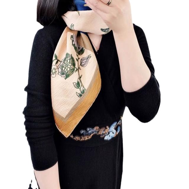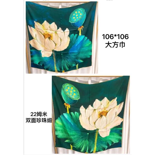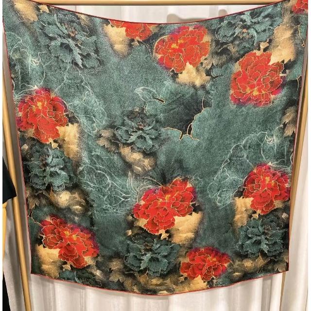 免運 高端文藝珍珠緞真絲大方巾新中式中國風荷葉邊桑蠶絲絲巾禮盒包裝