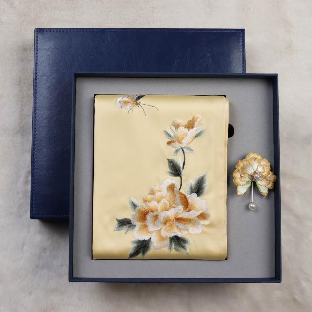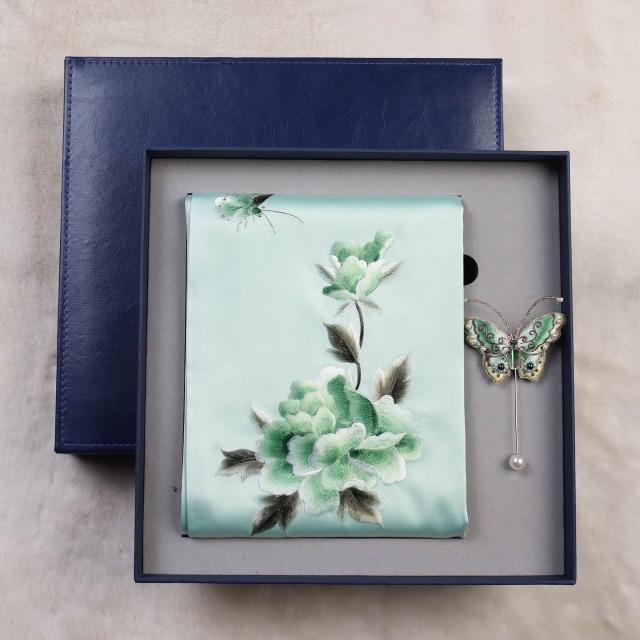 免運 刺繡圍巾女士絲綢手工蘇繡絲巾國風旗袍披肩禮盒送長輩媽媽禮品