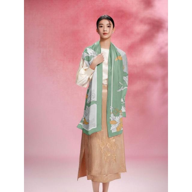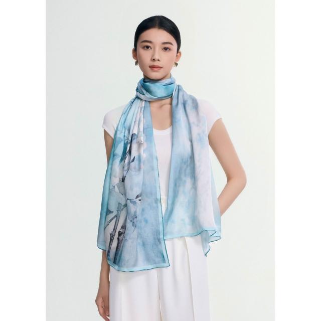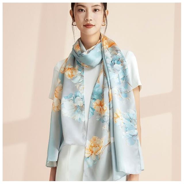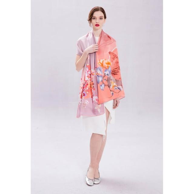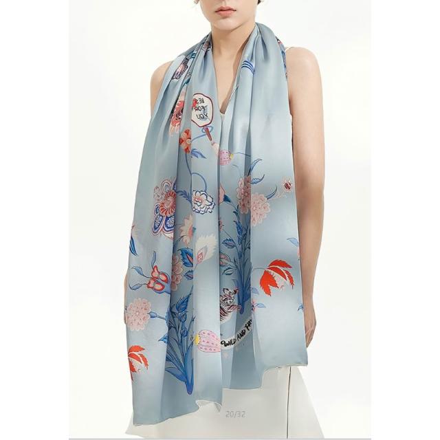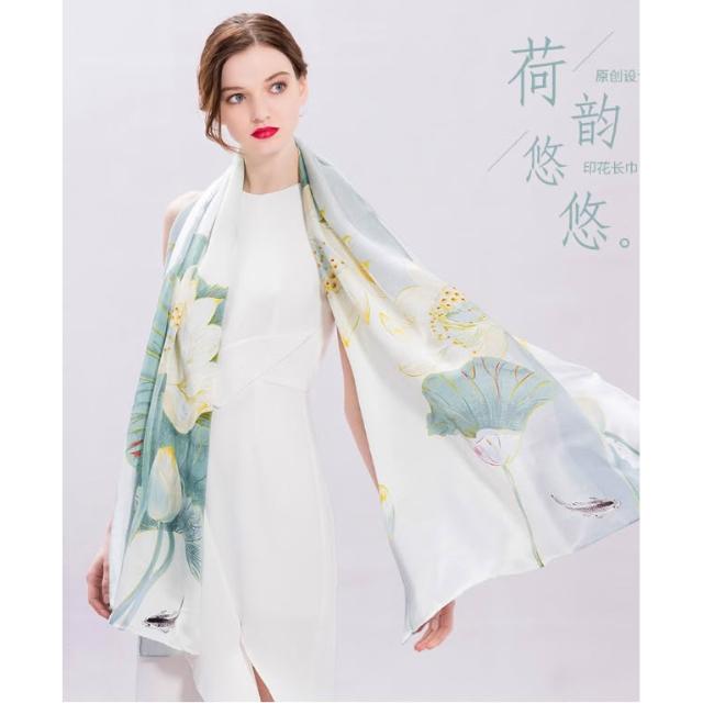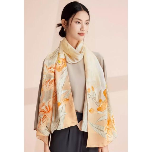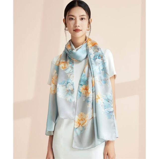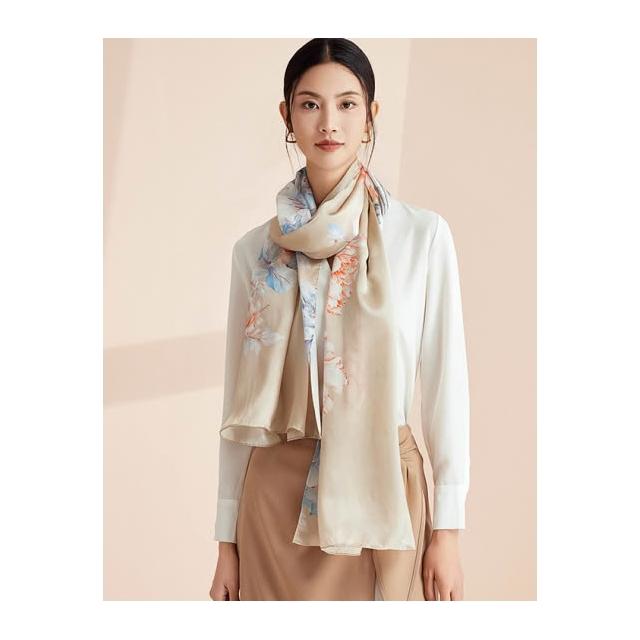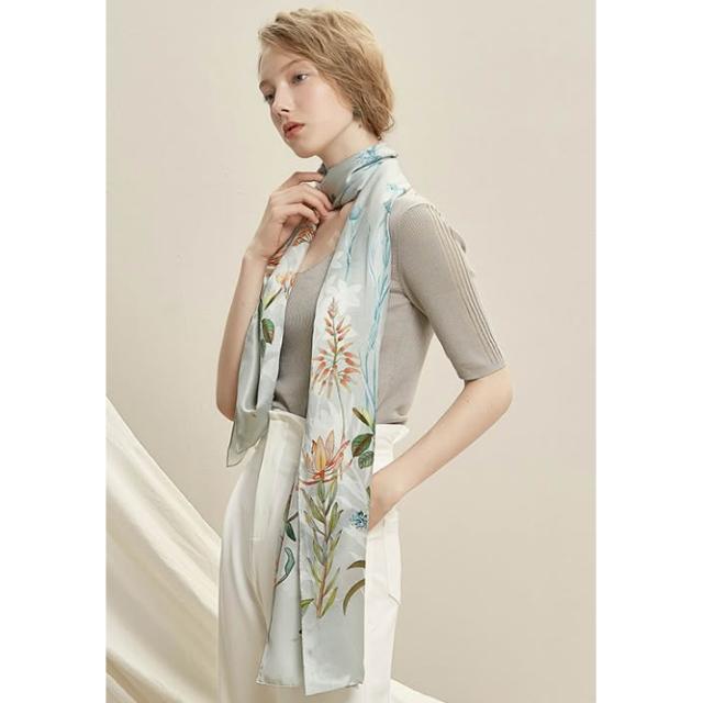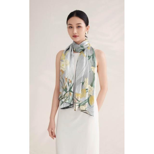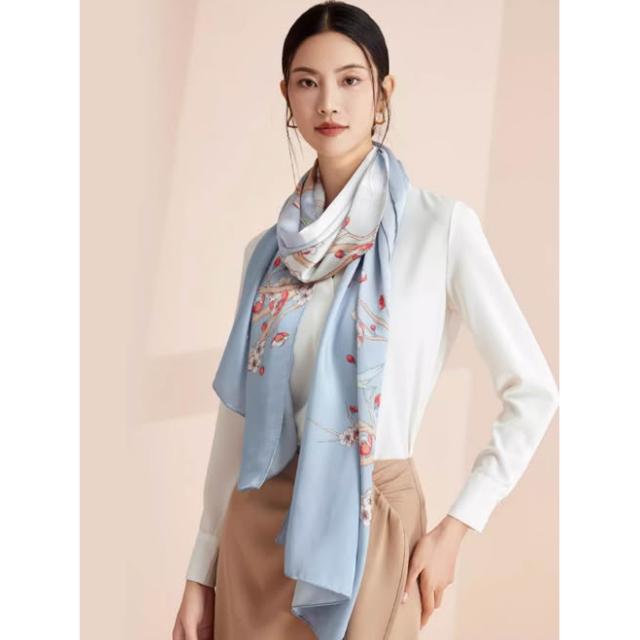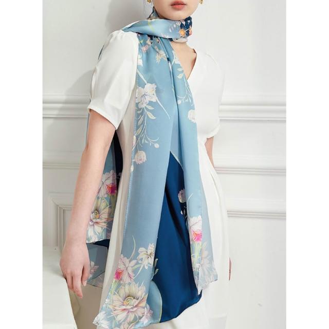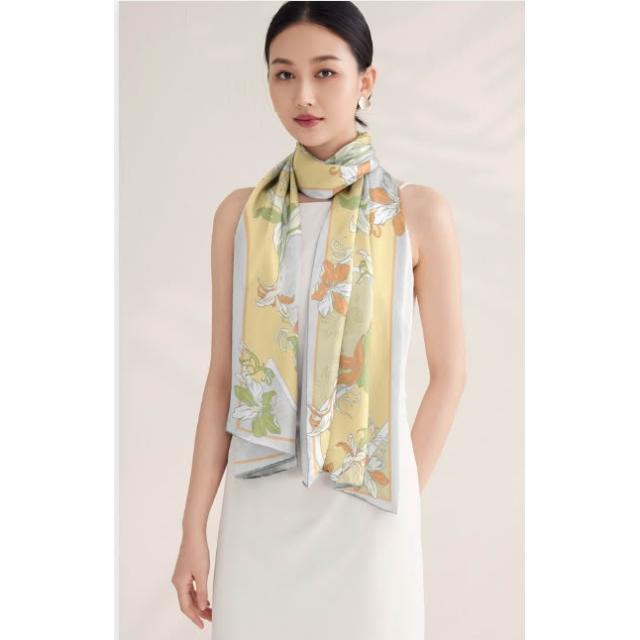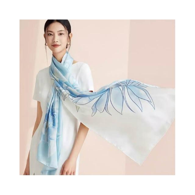 免運 高級感新款真絲印花長條絲巾桑蠶絲國風圍巾媽媽生日節日單位禮品