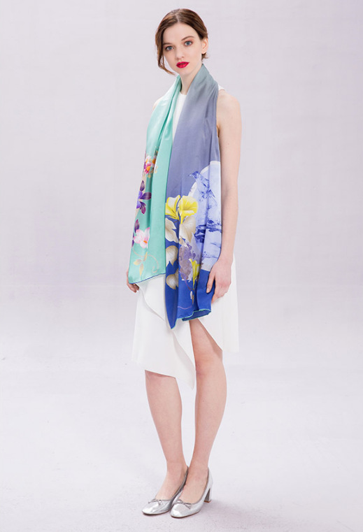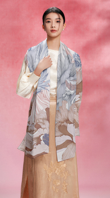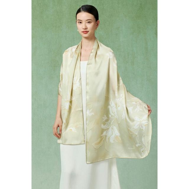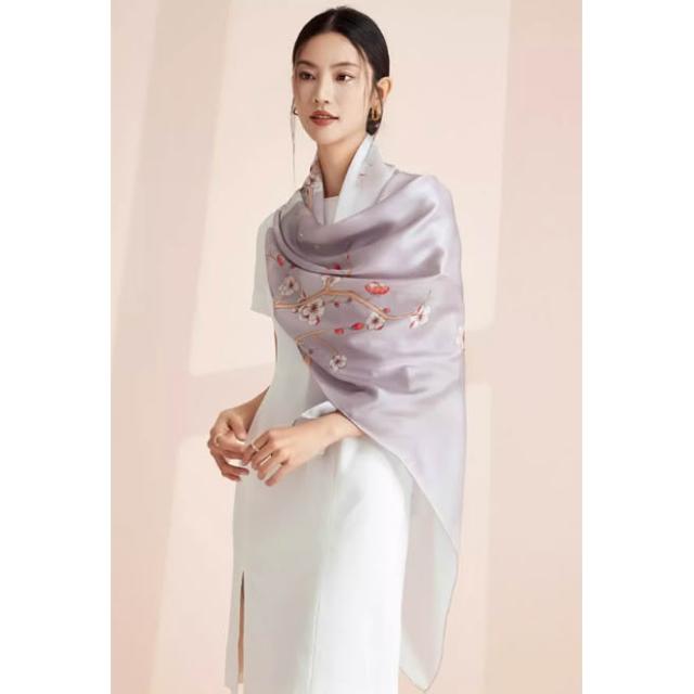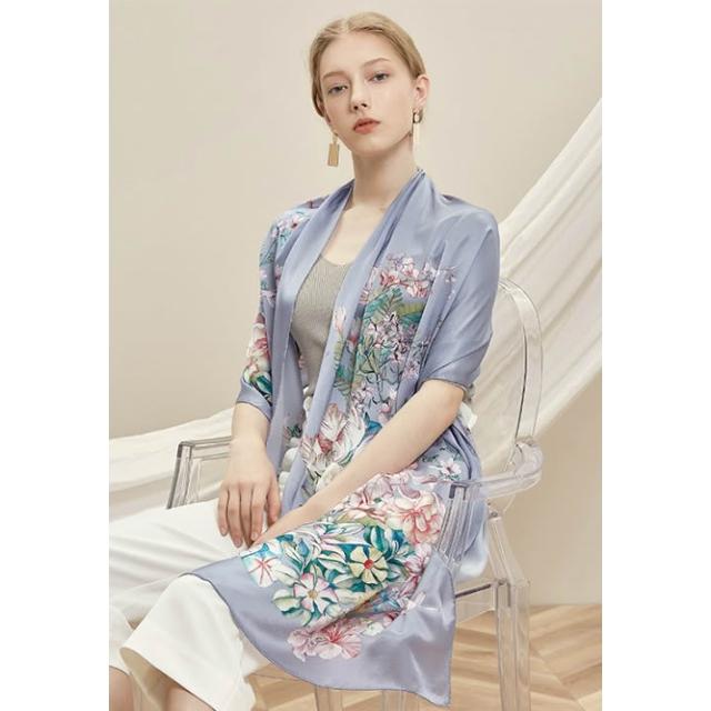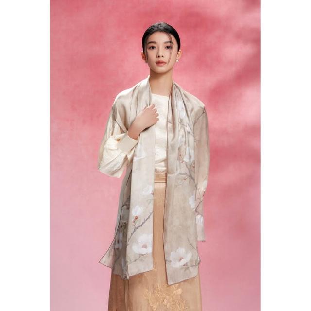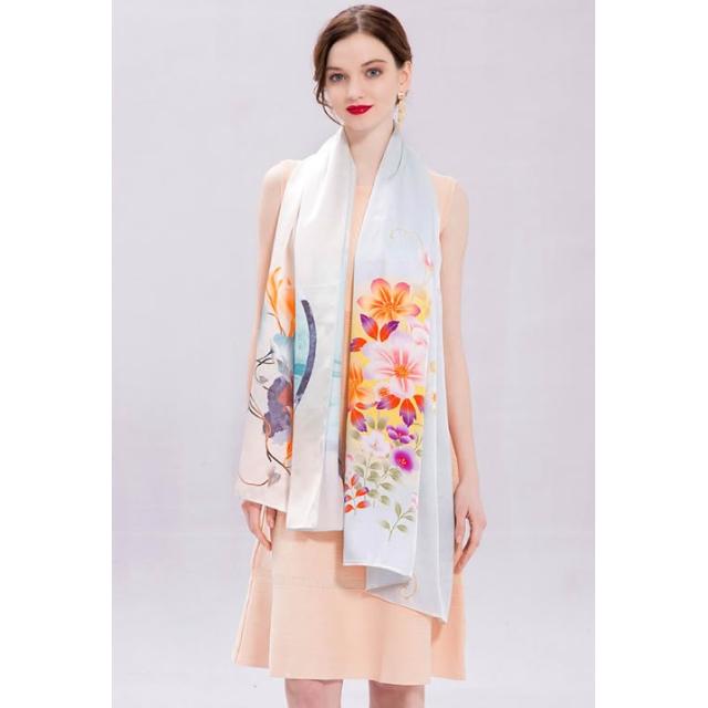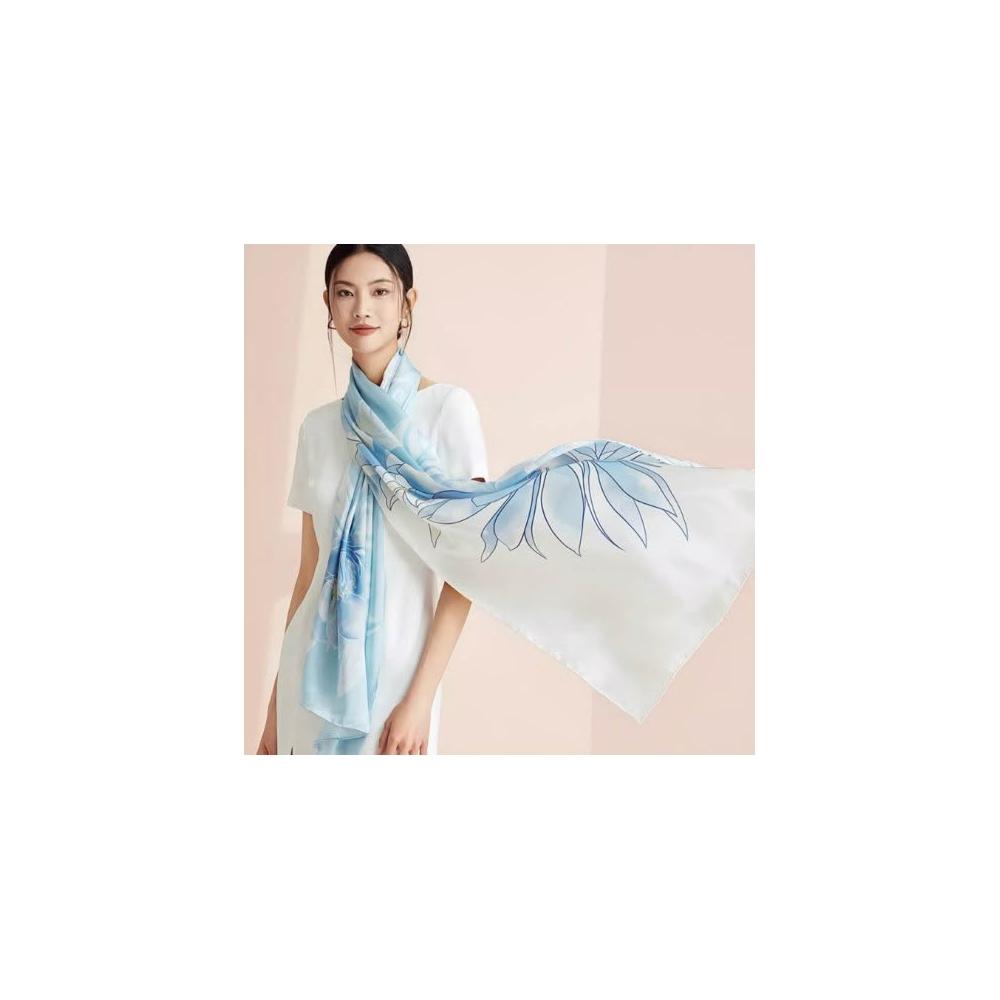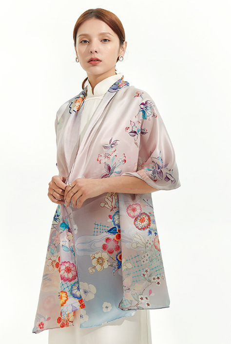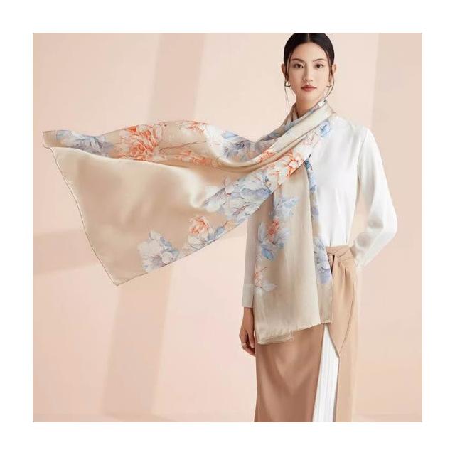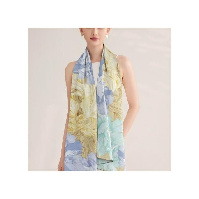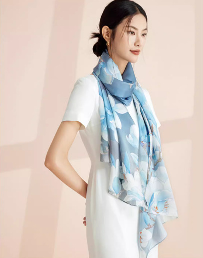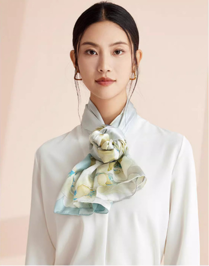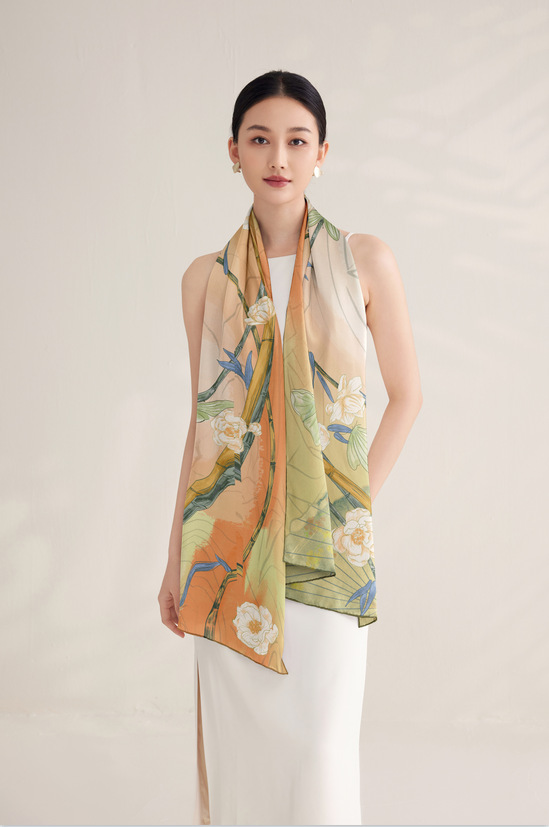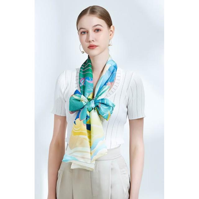 免運 高級感新款真絲印花長條絲巾桑蠶絲國風圍巾媽媽生日節日單位禮品