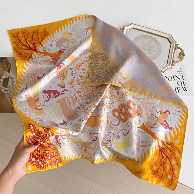 免運 真絲雙面印花90方巾春夏季真絲絲巾100%桑蠶絲裝飾方巾真絲圍巾女