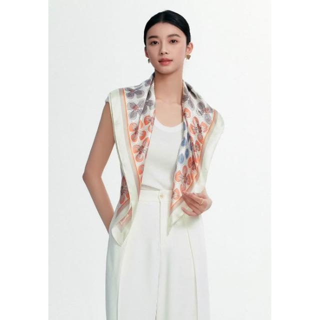 免運 真絲絲巾女2026新款90大方巾桑蠶絲圍巾母親節媽媽款生日披肩禮物
