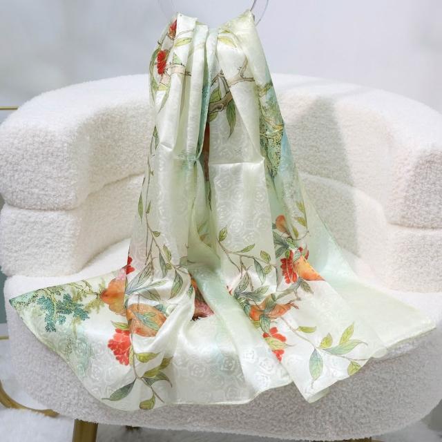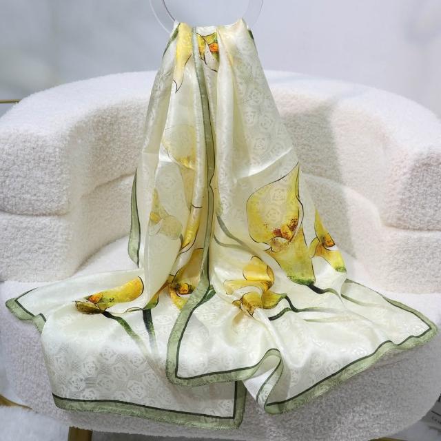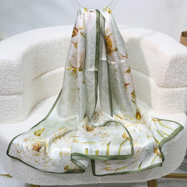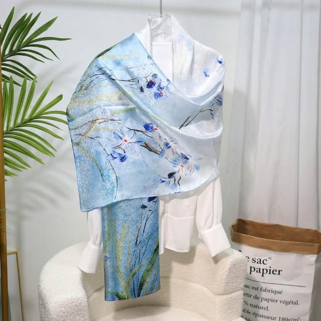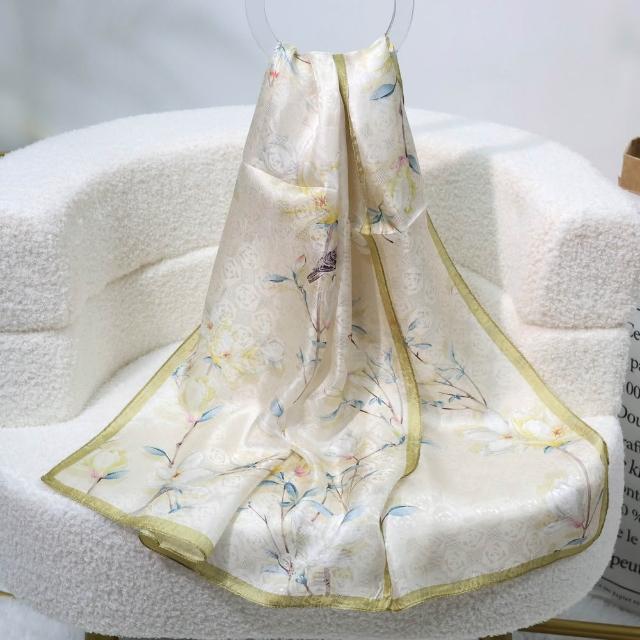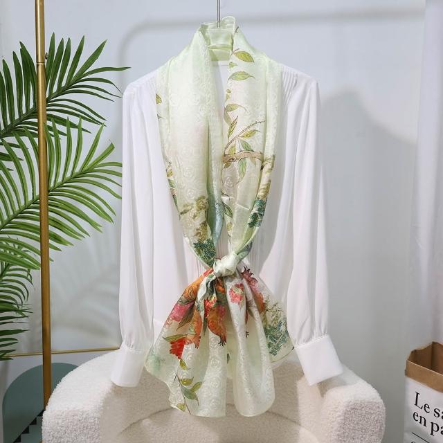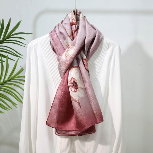免運 25春夏新款真絲花羅絲巾 100桑蠶絲提花長披肩送媽媽實用禮物圍巾