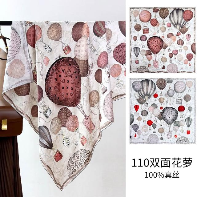 免運 告白熱氣球雙面雙色香雲紗花蘿大方巾輕奢高檔真絲提花圍巾披肩女