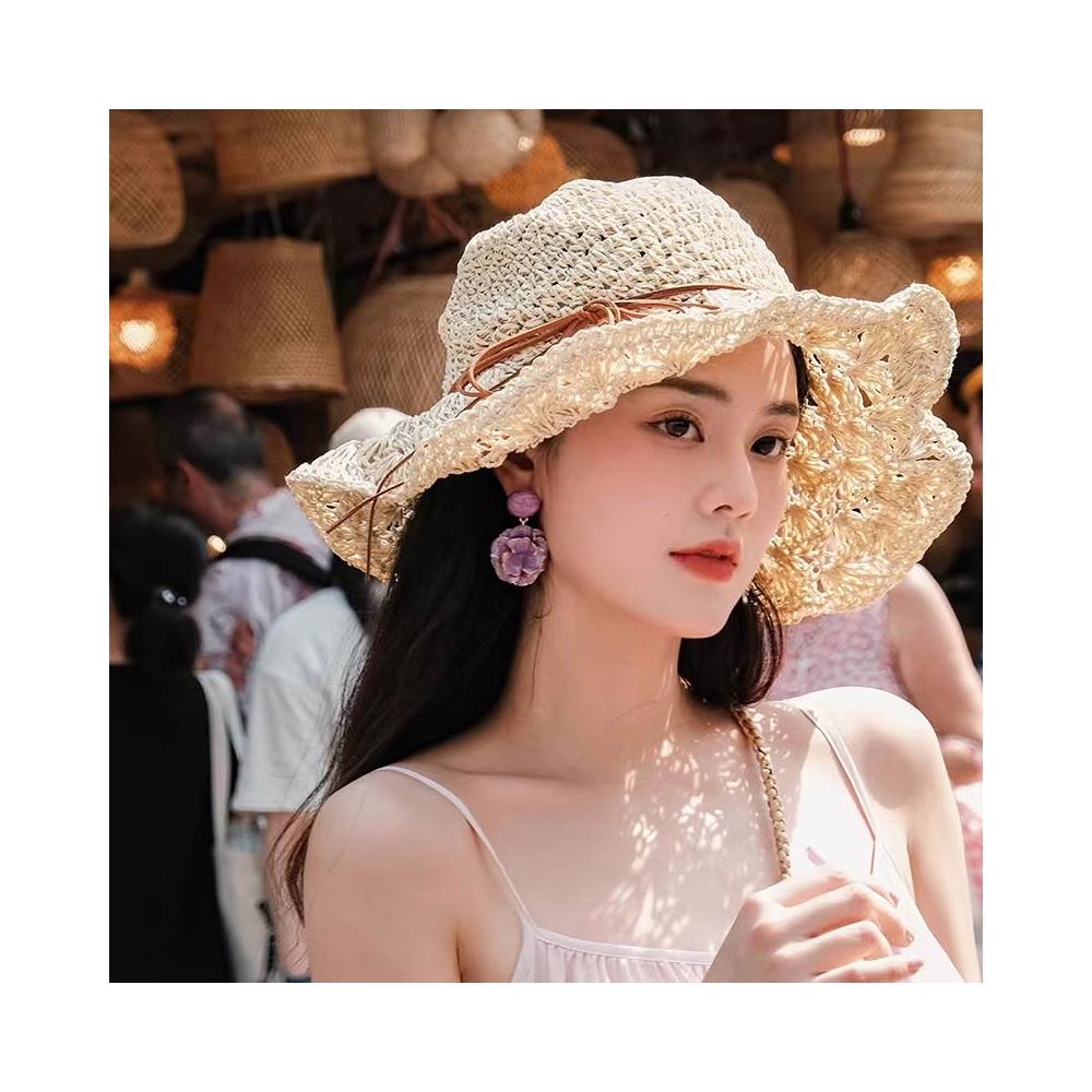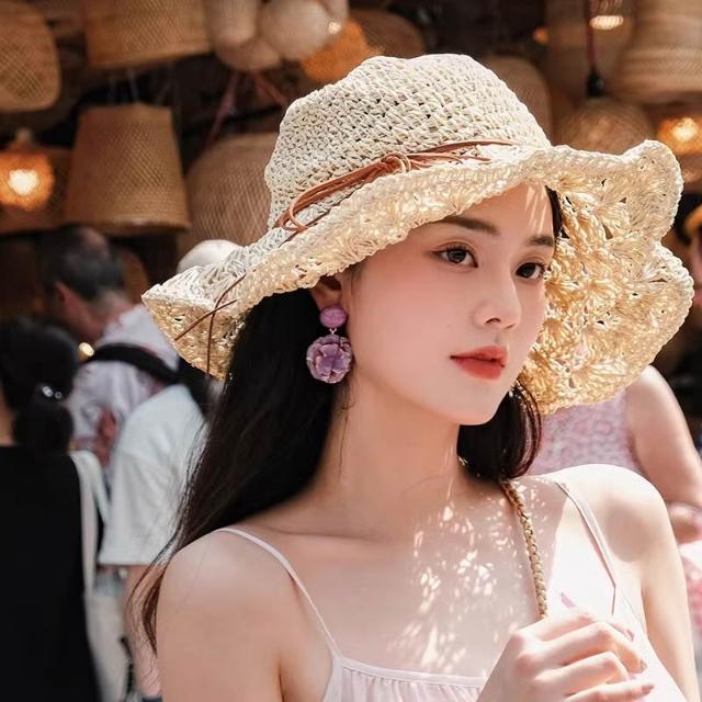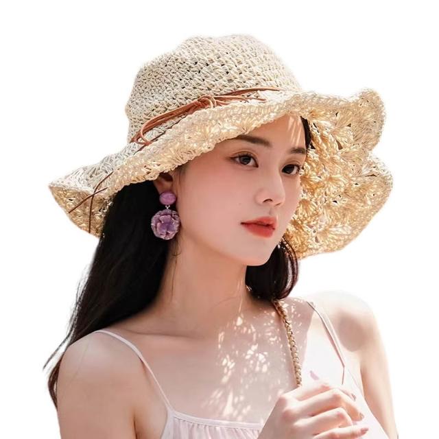 免運 草編防曬帽子女2026新款夏季系帶草帽沙灘海邊百搭太陽帽遮陽帽
