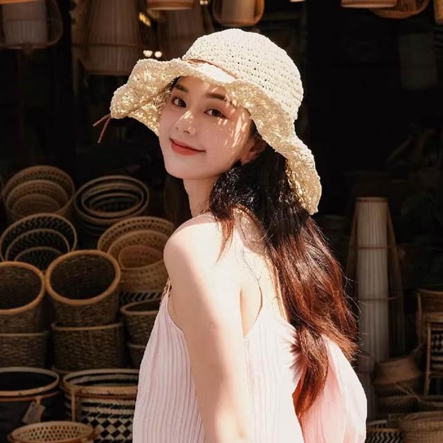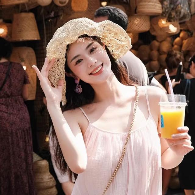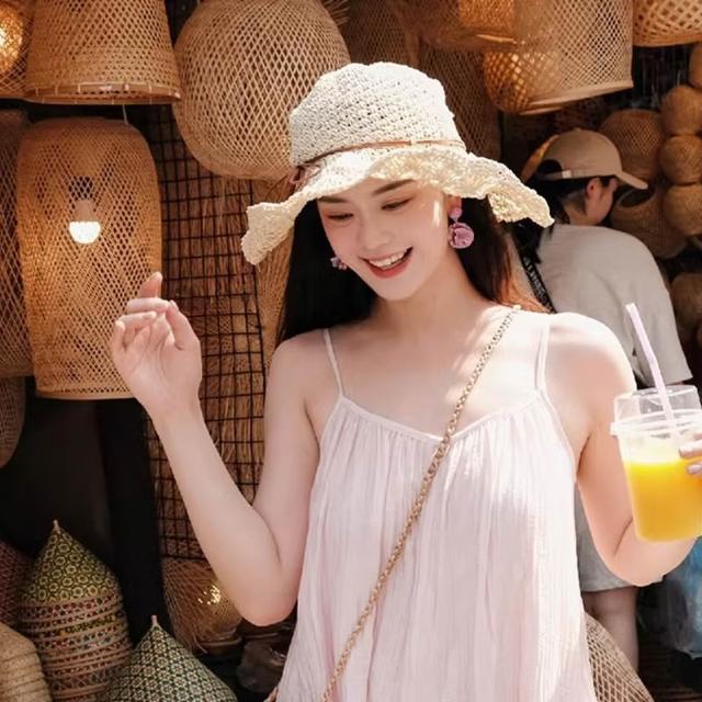 免運 草編防曬帽子女2026新款夏季系帶草帽沙灘海邊百搭太陽帽遮陽帽