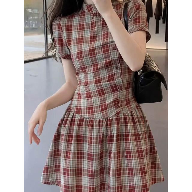 法式復古風格紋連衣裙2026春季新款通勤風收腰顯瘦氣質女神範短裙