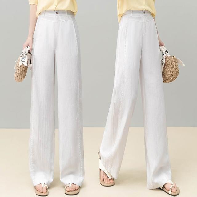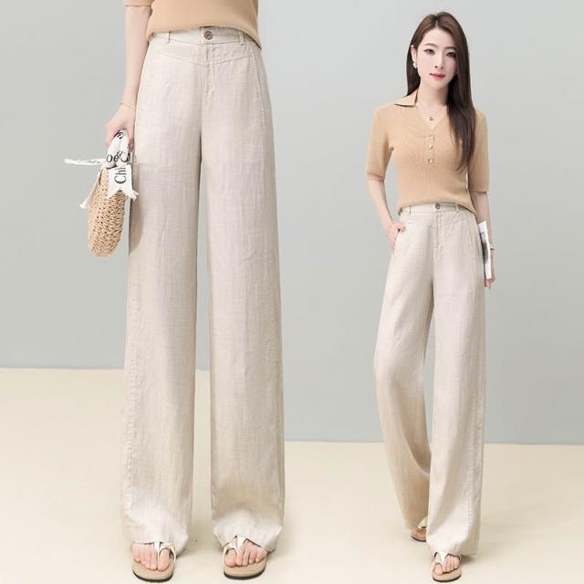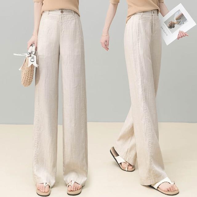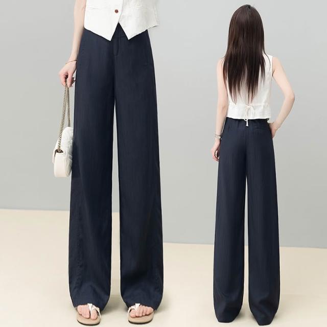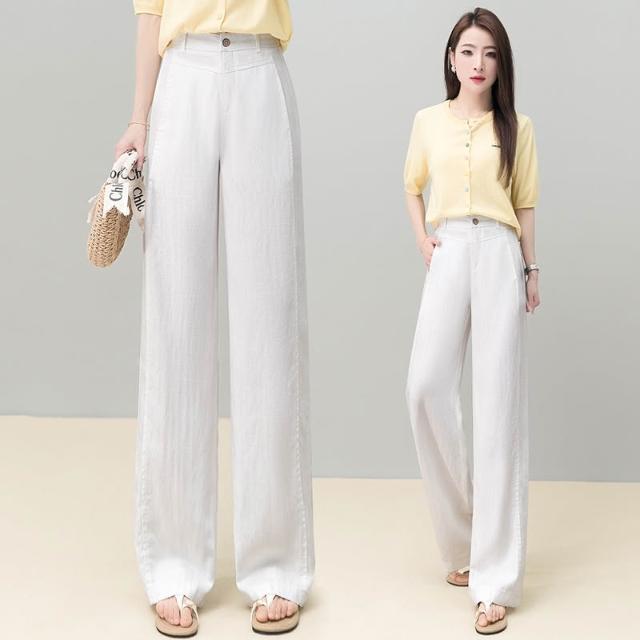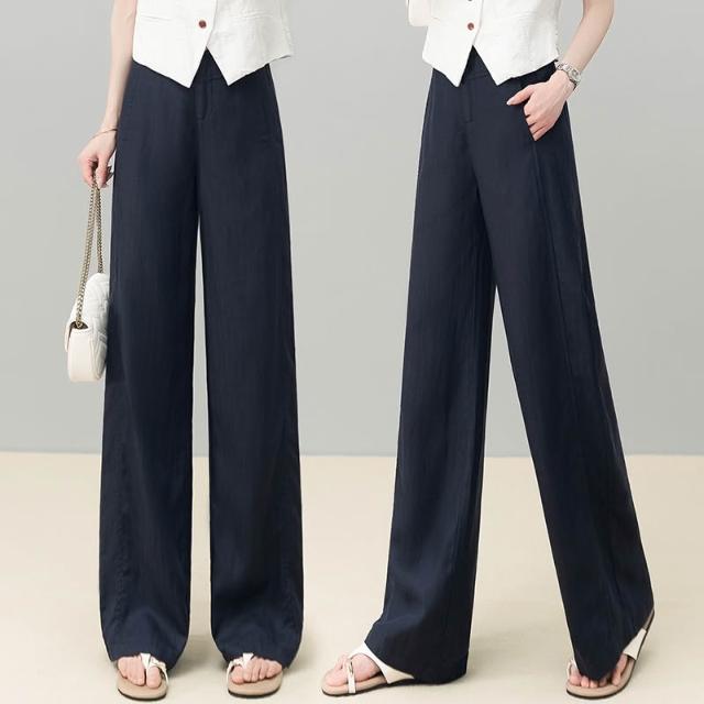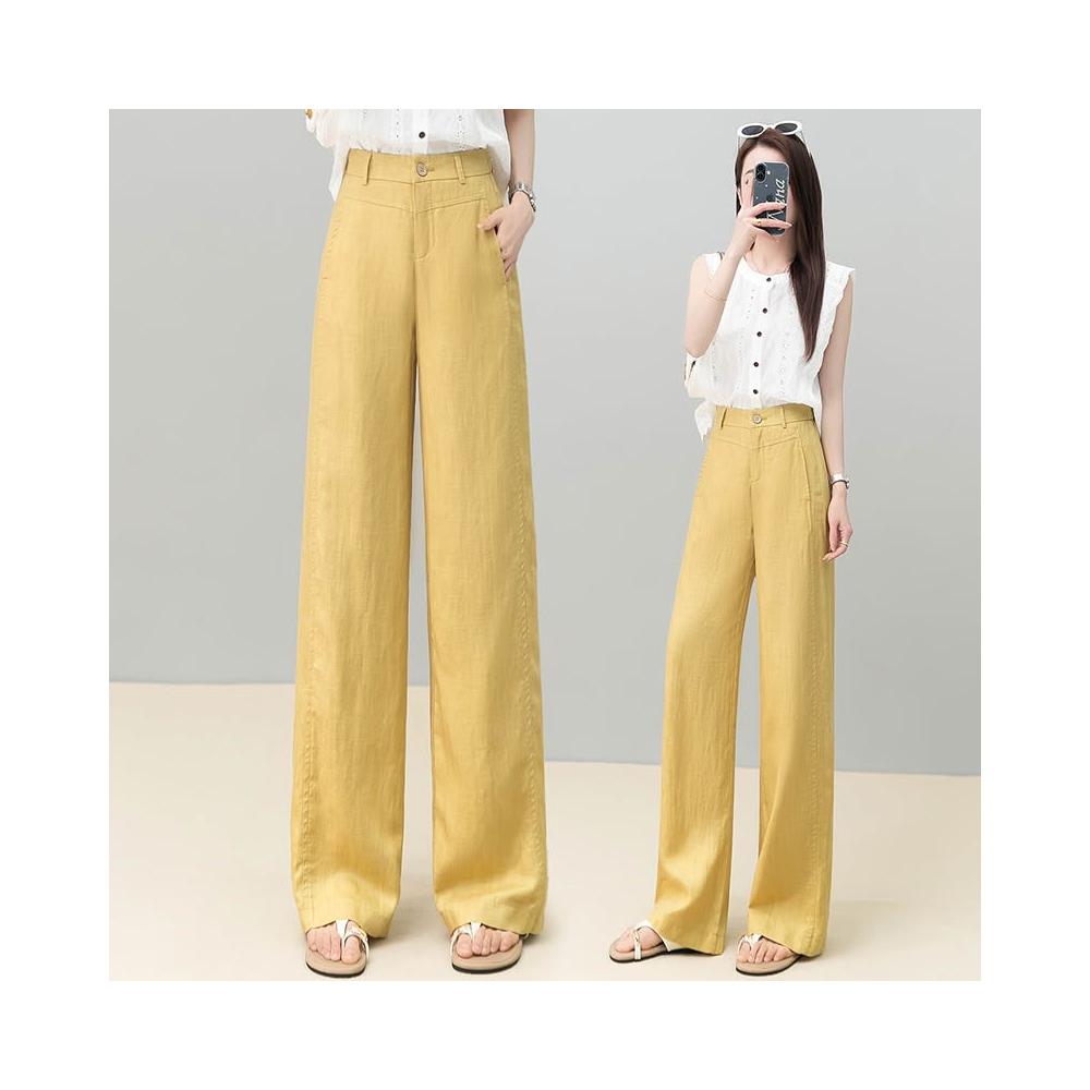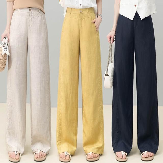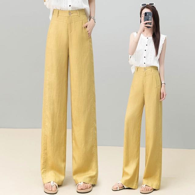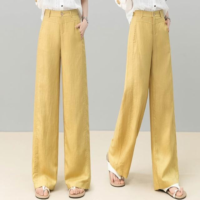 免運 黃色天絲亞麻闊腿褲女2026夏季薄款新款高腰後鬆緊顯瘦休閒直筒褲