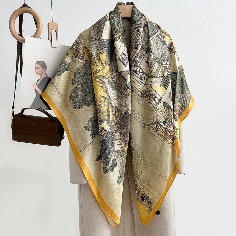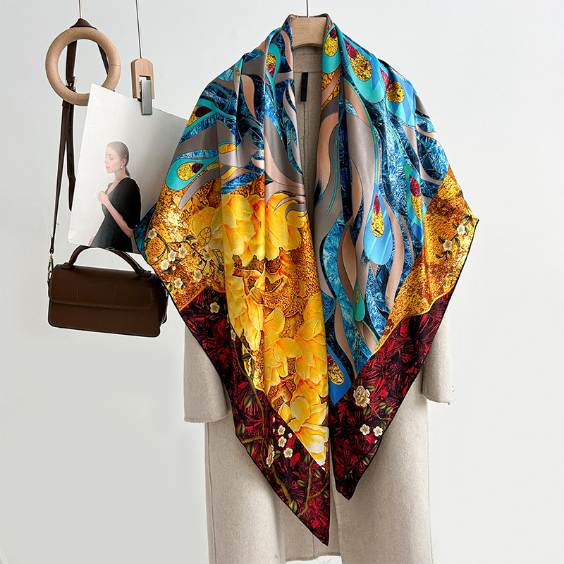 免運 真絲絲巾女2023新品圍巾秋冬140披肩外搭女桑蠶絲大方巾高級感