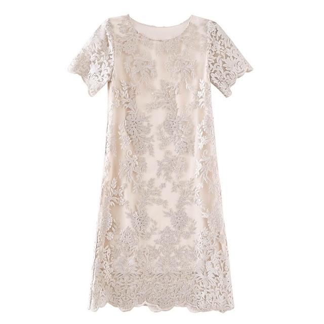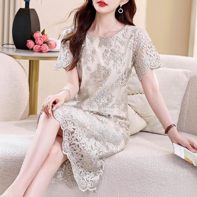 免運 2026夏季刺繡真絲連衣裙女春夏新款圓領寬鬆遮肚顯瘦媽媽桑蠶絲裙