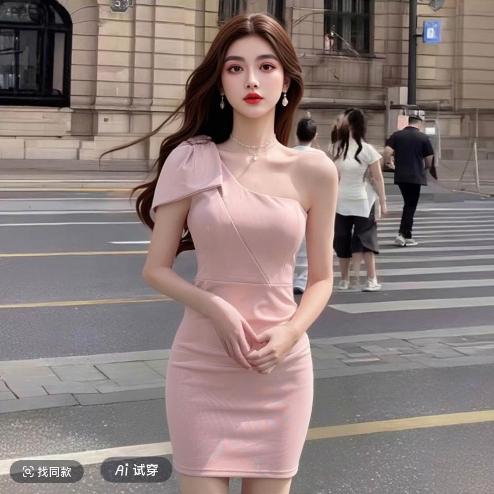 免運 法式氣質單肩性感蝴蝶結修身連衣裙夜場小眾高級感名媛晚宴小禮服