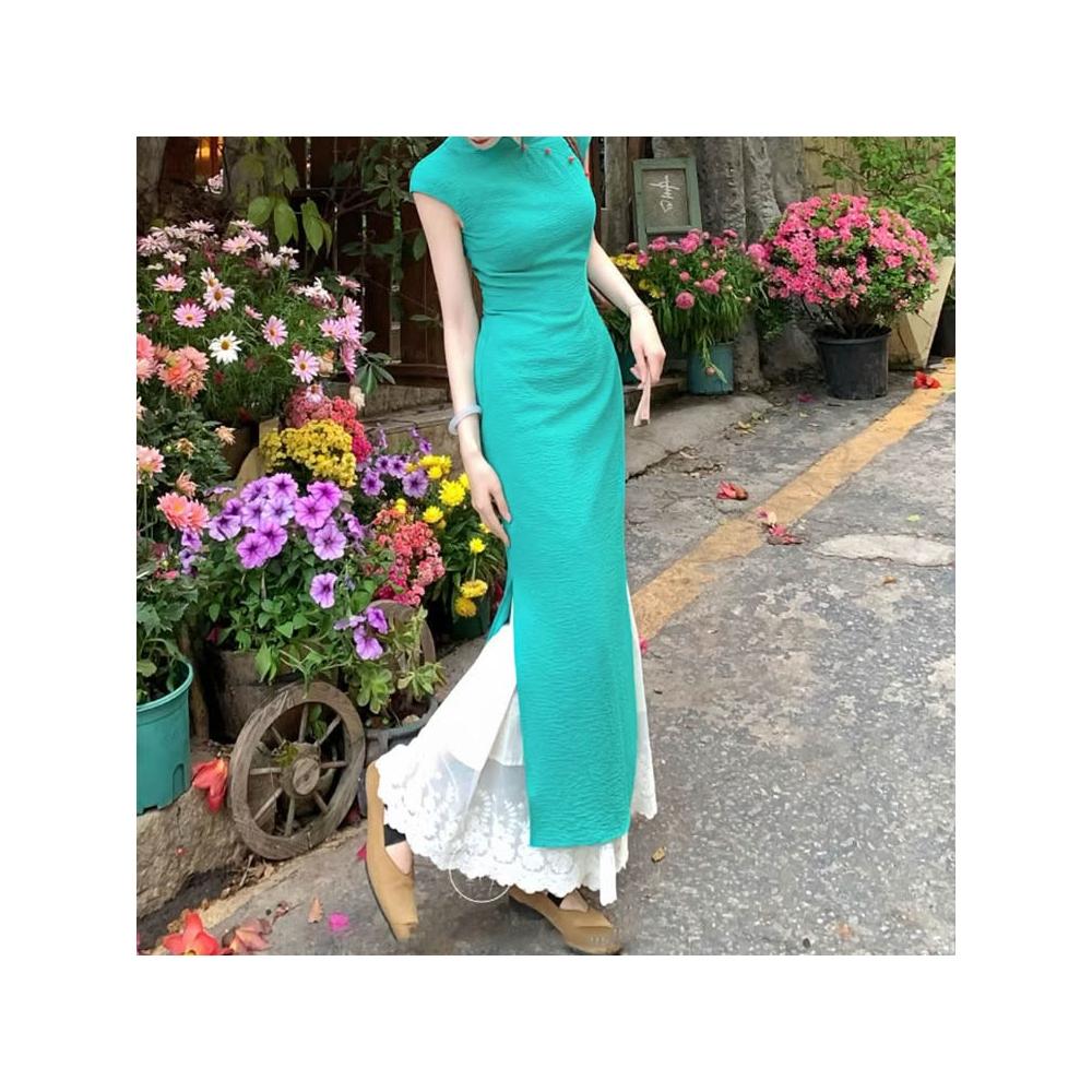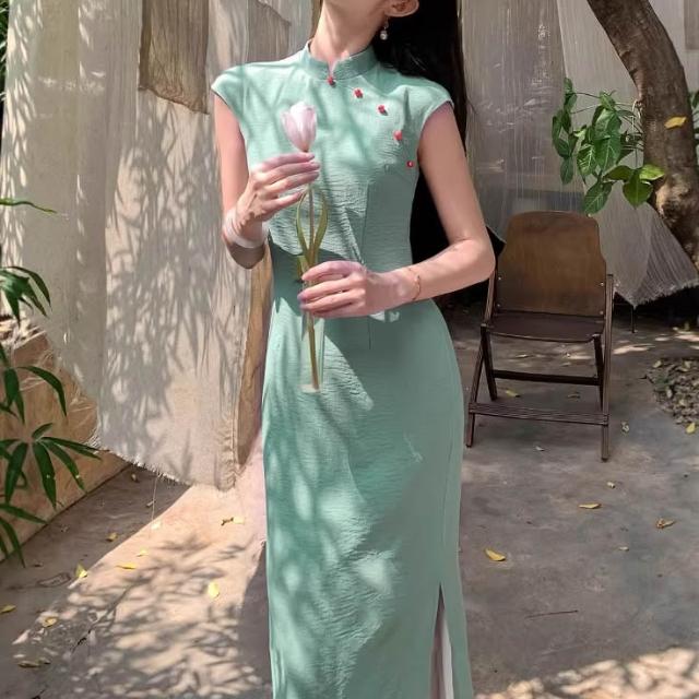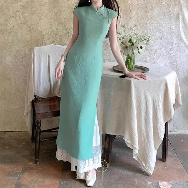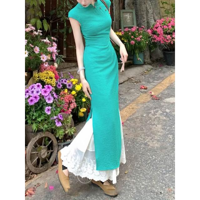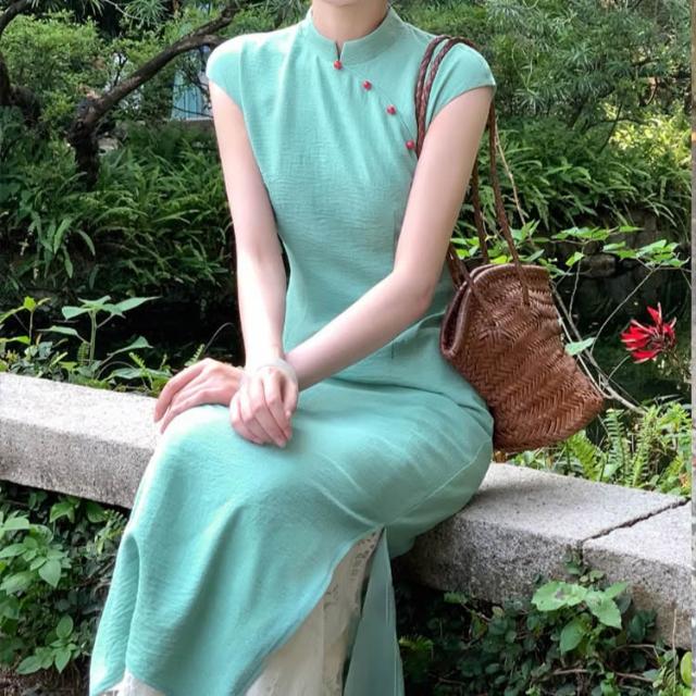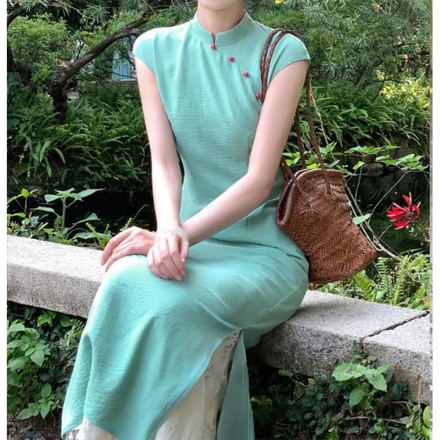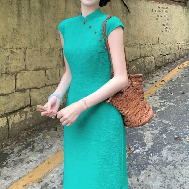 免運 碧城春曲'新中式冰絲皺改良旗袍女春夏明媚漂亮連衣裙