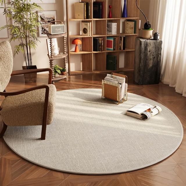 日系仿亞麻編織圓形地毯 無印風 耍廢區 房間 臥室 客廳 床邊 抓週 抓周 素色 混紡 棉麻 地毯 地墊