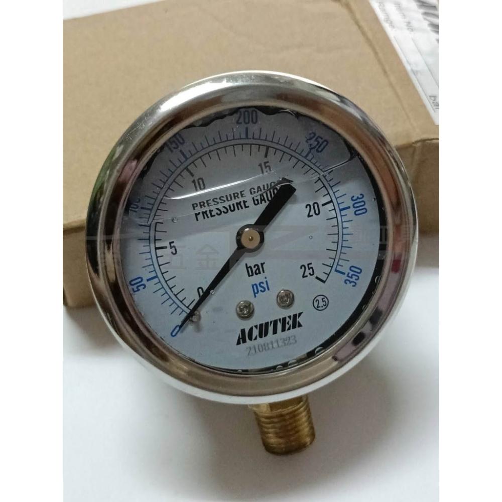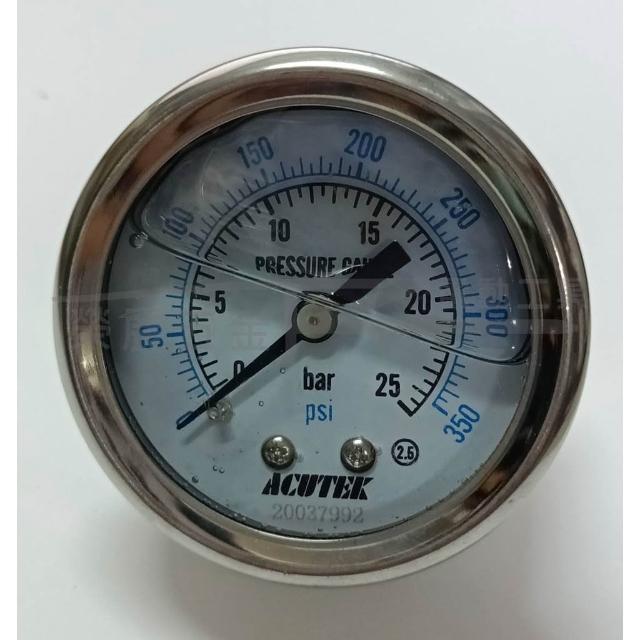 YN-60 25bar/ G1/4牙 ACUTEK 耐震壓力表充油不鏽鋼 立式/埋入式 有油式清洗機壓力錶