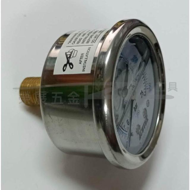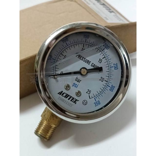 YN-60 25bar/ G1/4牙 ACUTEK 耐震壓力表充油不鏽鋼 立式/埋入式 有油式清洗機壓力錶