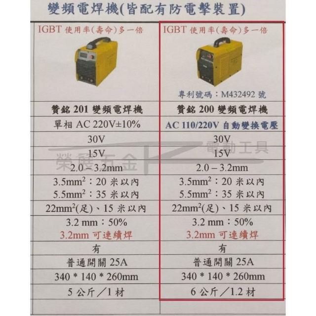 台灣製造 贊銘 變頻200電焊機 AC110/220自動換電壓 IGBT面板 變頻電焊機 防電擊 3.2mm