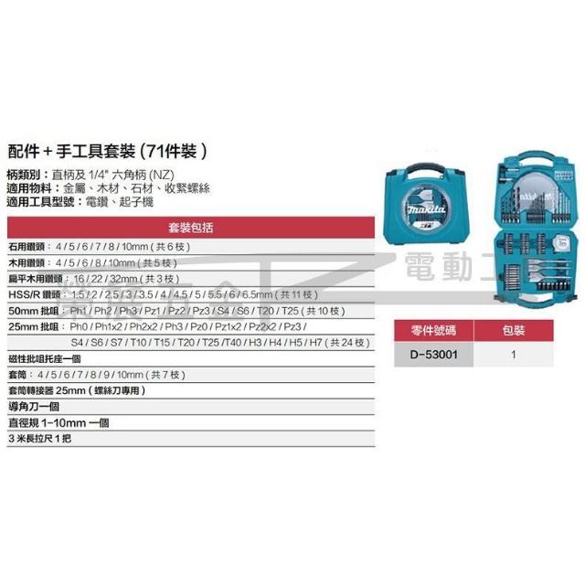 D-53001 71件工具組 牧田 Makita配件手工具套裝組 BIT 鑽頭組 起子 一字 十字鑽尾套組