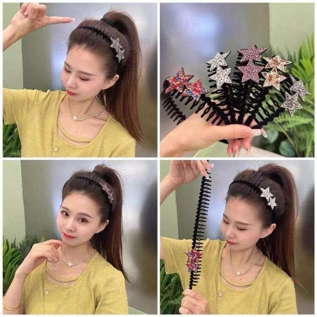 (現貨含稅)雙星帶齒防滑星星髮箍-3入組(顏色隨機3色)