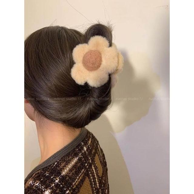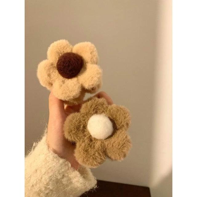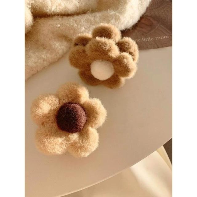 (現貨 含稅開發票)秋冬花朵毛絨抓夾-2入/包