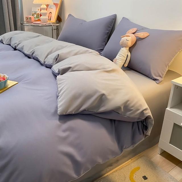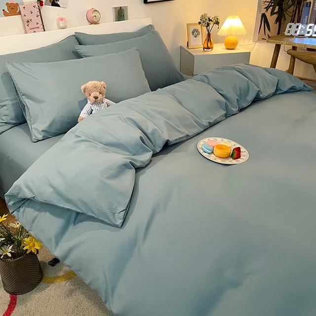 蝦米寢具 淺藍灰色 特大床包 加高35公分 日式單人被罩 雙人 加大 素色 床包 床包組 床單枕頭 被套/四件組/被單