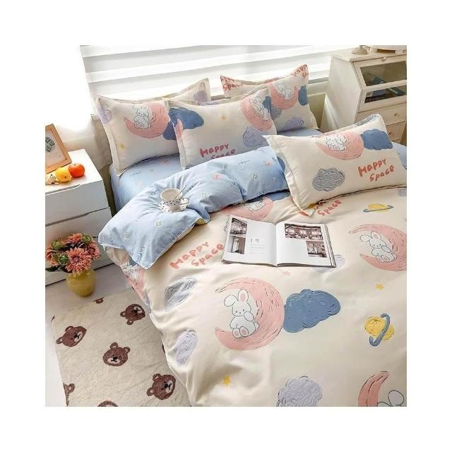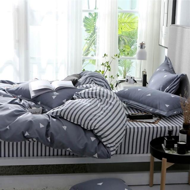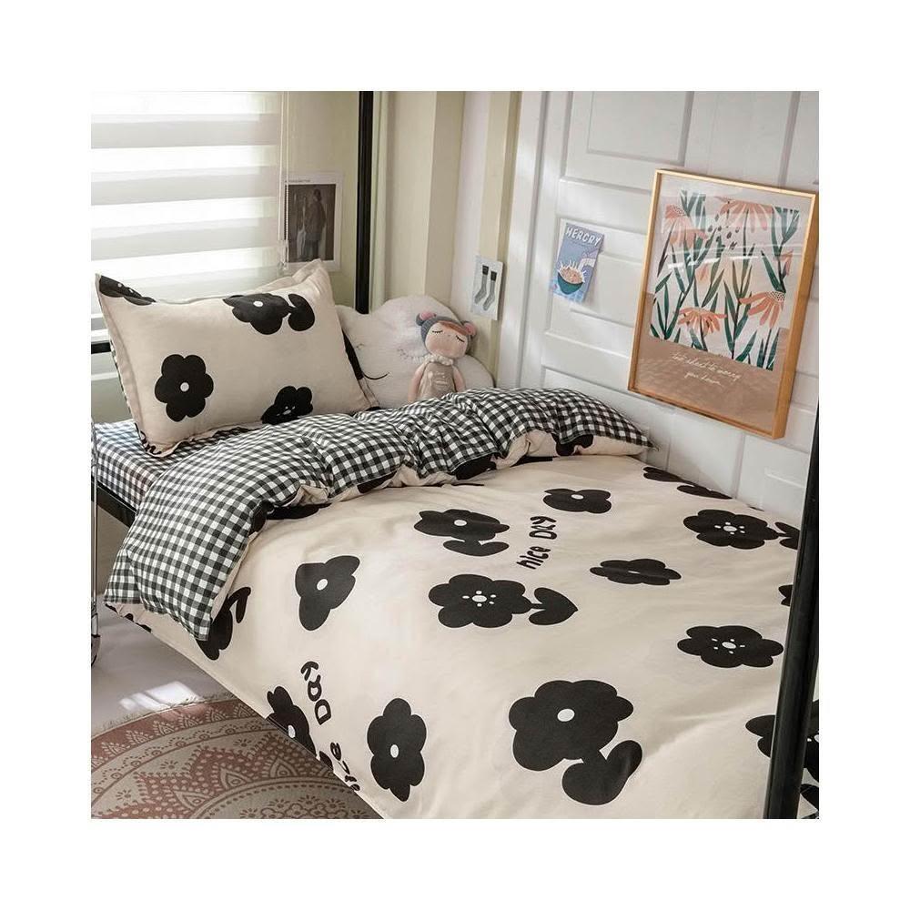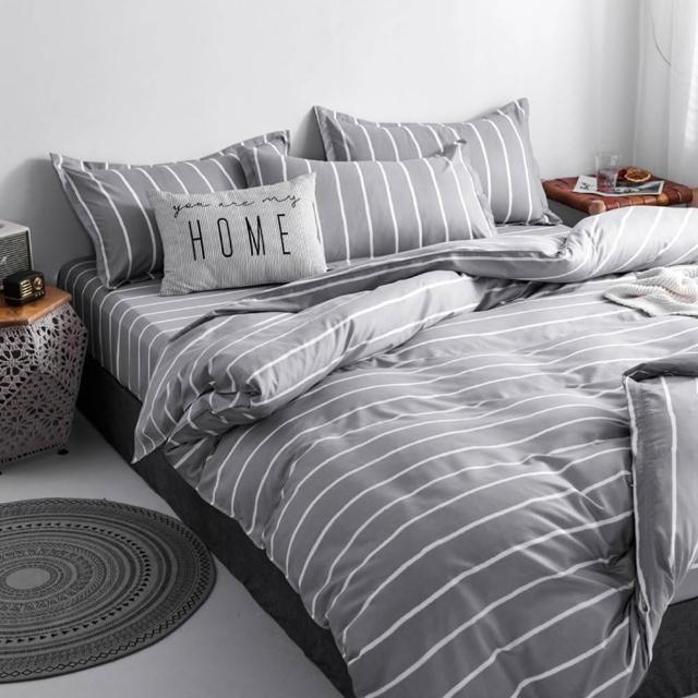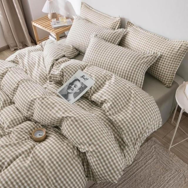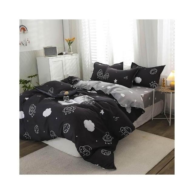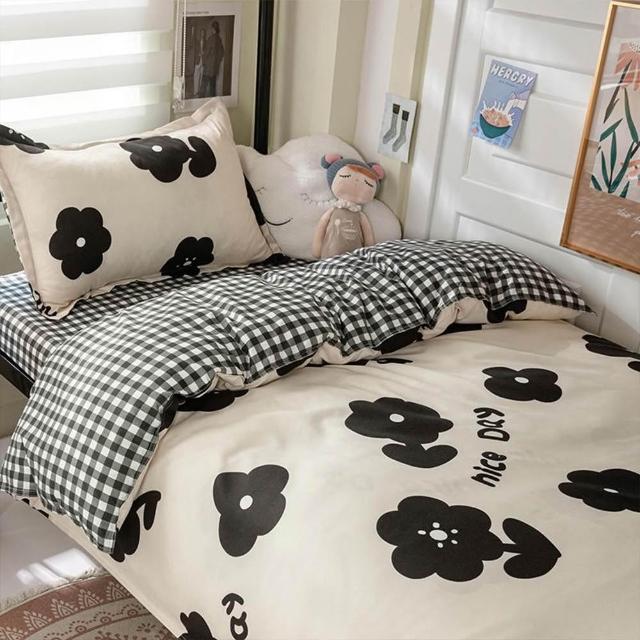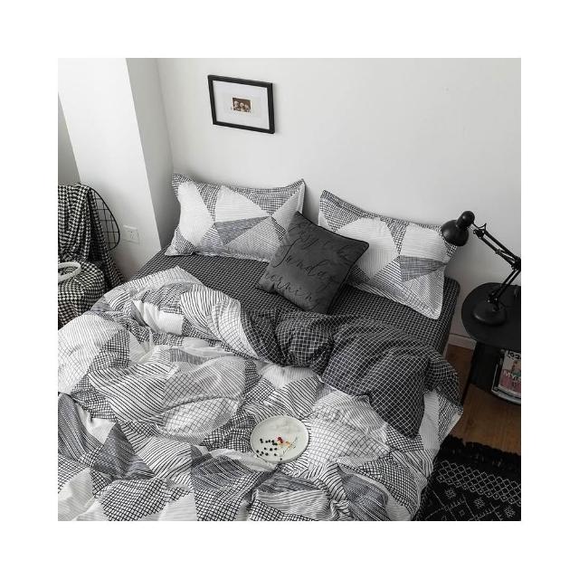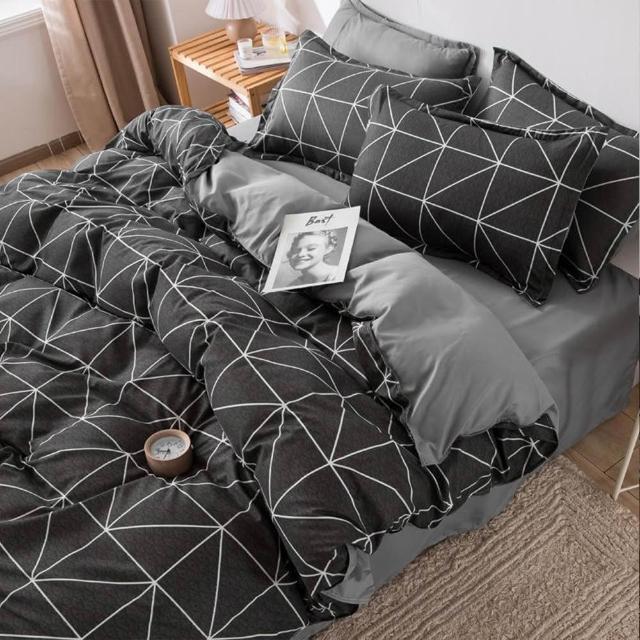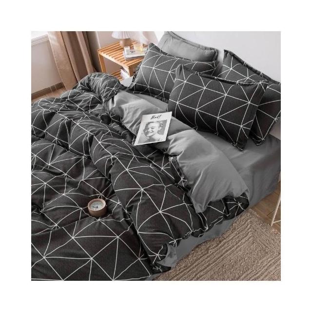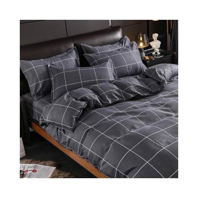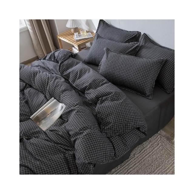 蝦米寢具 格子 素黑色 床單被套雙人特大 加大 加高35公分 床包組 三件組 四件組 枕頭套 現貨 床包 水洗棉 卡通