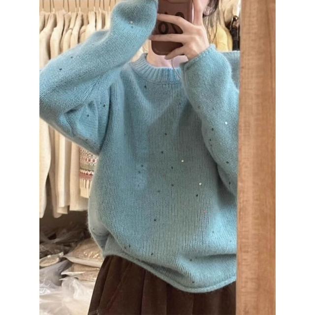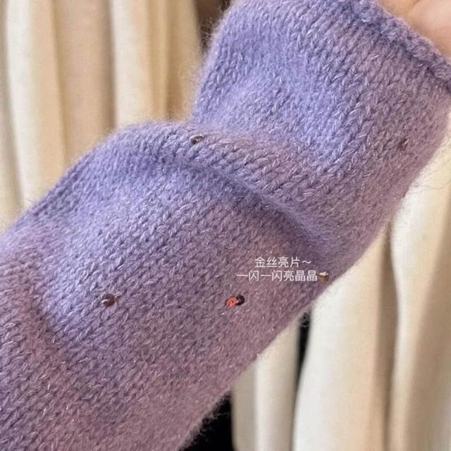 希妍 溫柔風軟糯紫色亮片毛衣女秋冬奶fufu慵懶外穿套頭針織上衣
