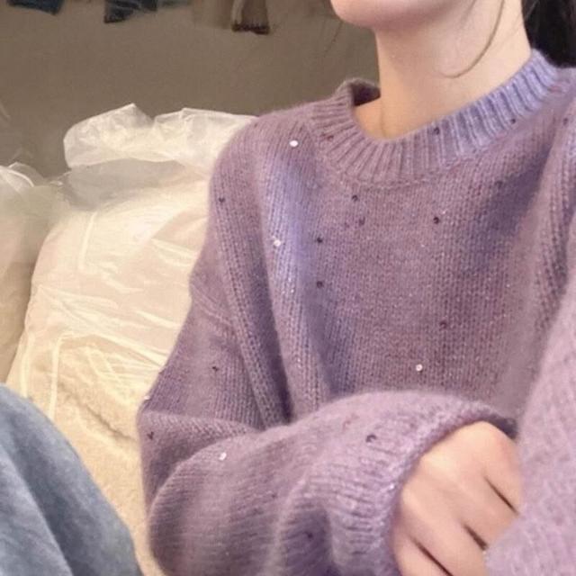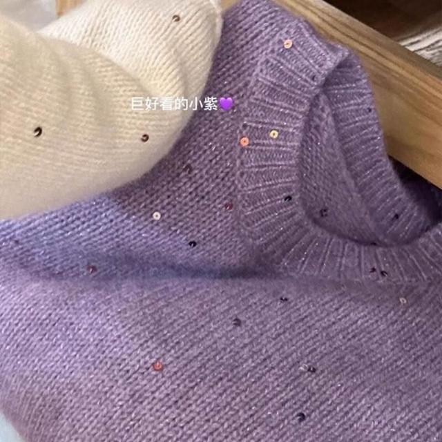 希妍 溫柔風軟糯紫色亮片毛衣女秋冬奶fufu慵懶外穿套頭針織上衣
