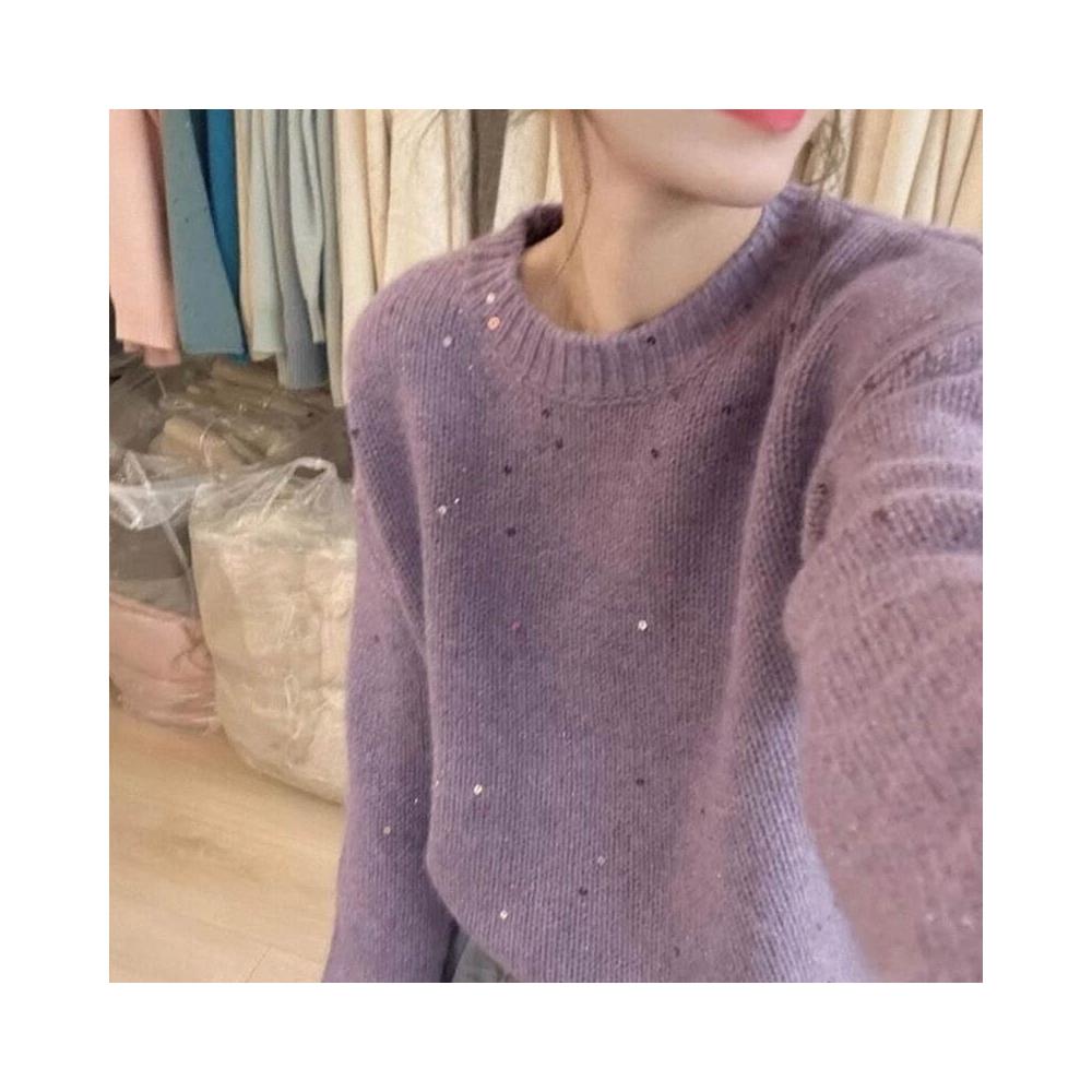 希妍 溫柔風軟糯紫色亮片毛衣女秋冬奶fufu慵懶外穿套頭針織上衣
