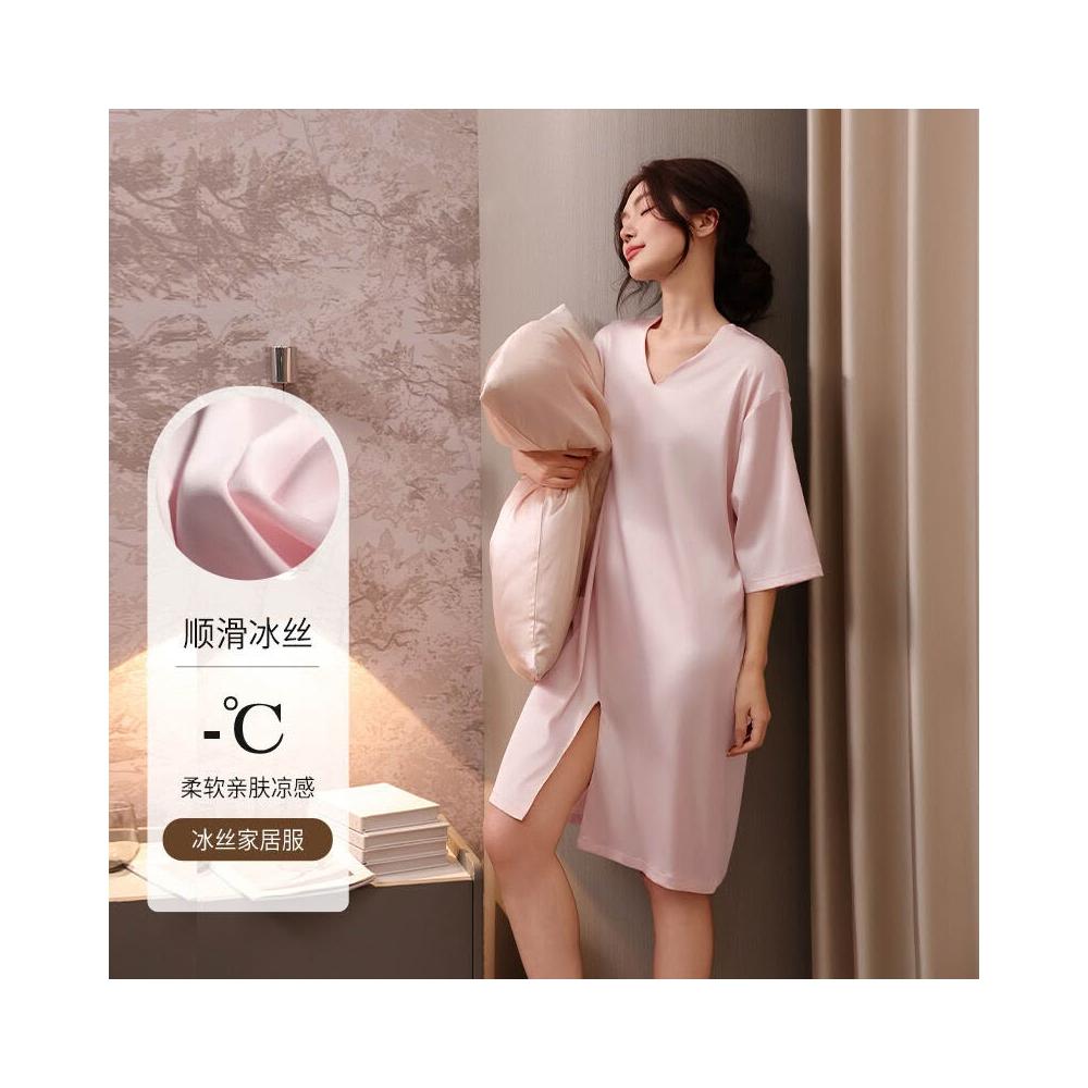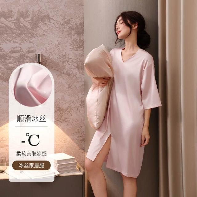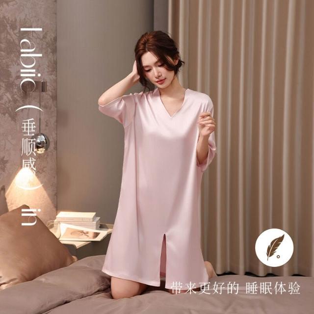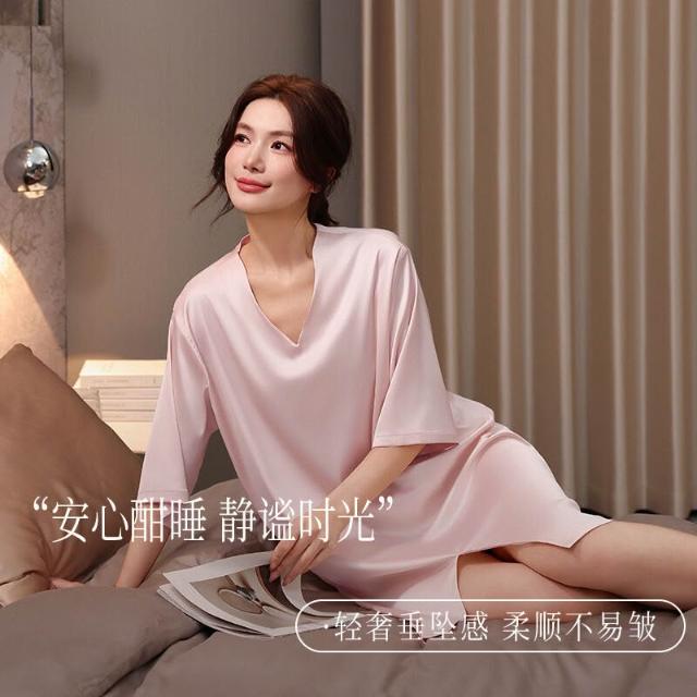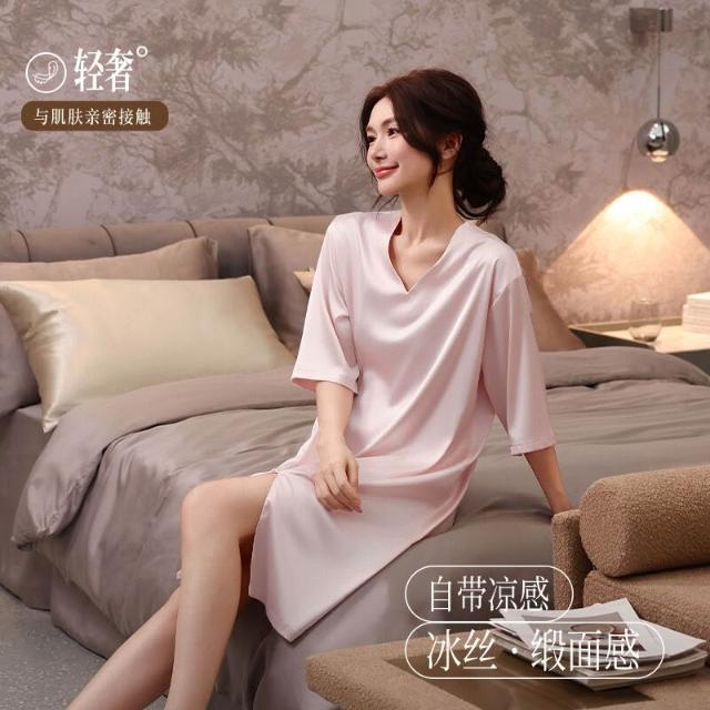 希妍 冰雪絲新款冰絲綢睡衣裙女夏季薄款半袖高級感性感宮廷風睡裙