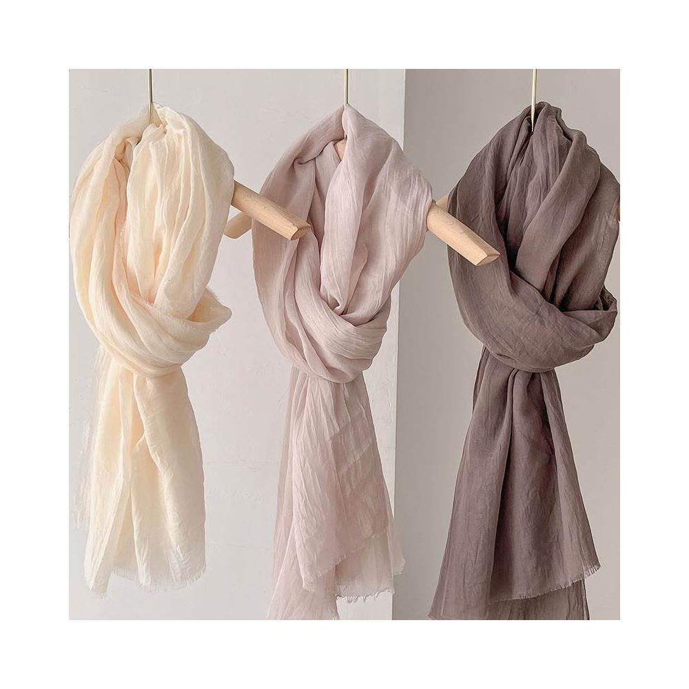 免運 女士圍巾 沙漠披肩 棉麻質感絲巾 米色百搭圍巾 防曬紗巾 絲巾薄款