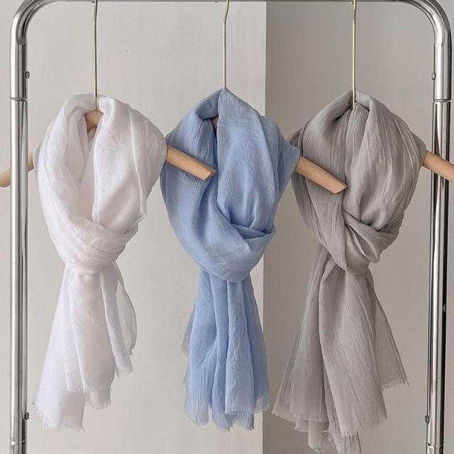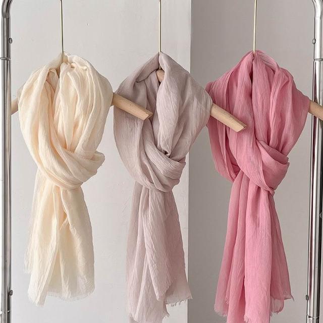 免運 女士圍巾 沙漠披肩 棉麻質感絲巾 米色百搭圍巾 防曬紗巾 絲巾薄款