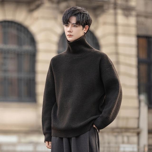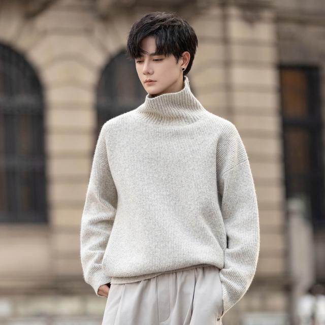 希妍 2025男士綿羊毛混紡高領毛衣休閑微闊針織衫高級感純色打底衫