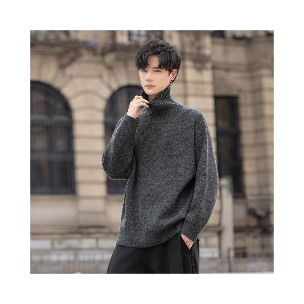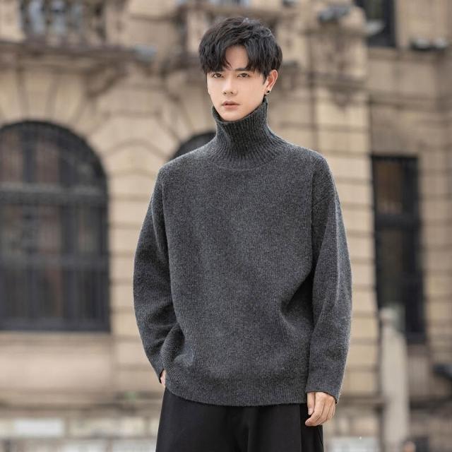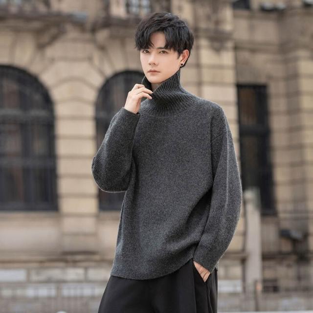 希妍 2025男士綿羊毛混紡高領毛衣休閑微闊針織衫高級感純色打底衫