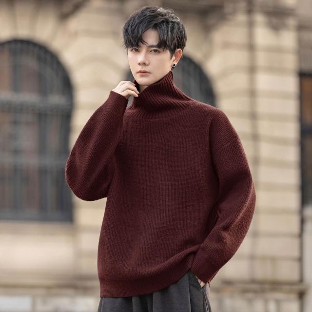 希妍 2025男士綿羊毛混紡高領毛衣休閑微闊針織衫高級感純色打底衫