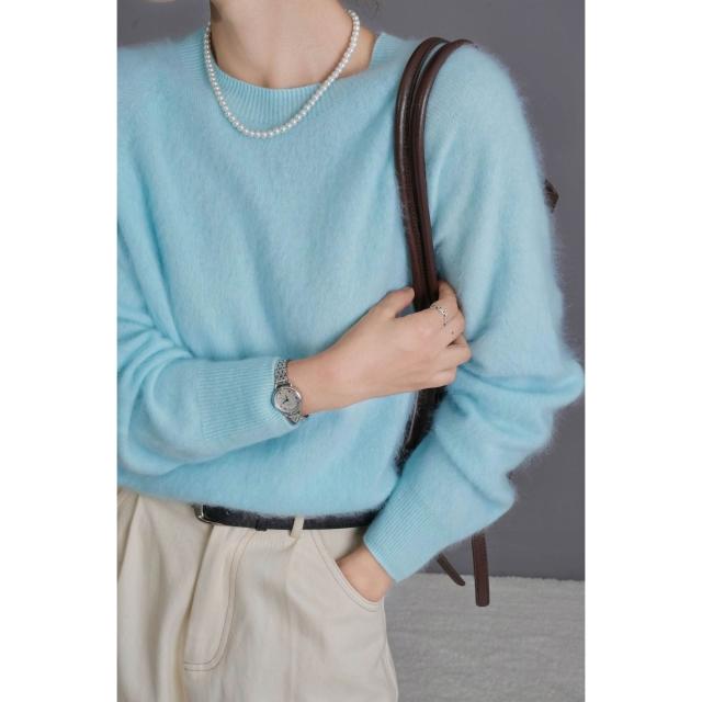 希妍 山羊絨拉絨圓領套頭一體成衣打底衫拉毛毛衣羊絨衫女式毛衣